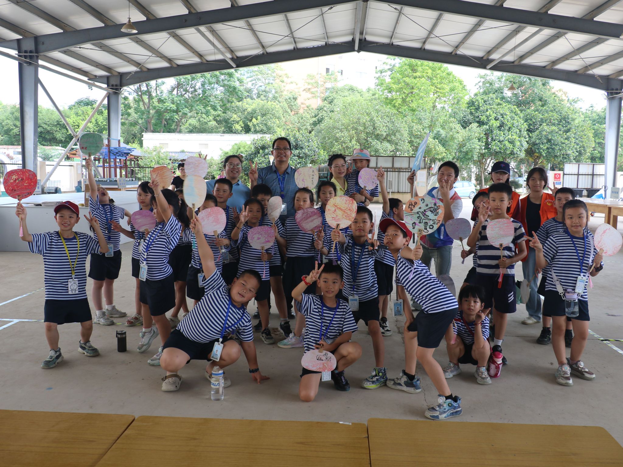 研学班做漆扇合照