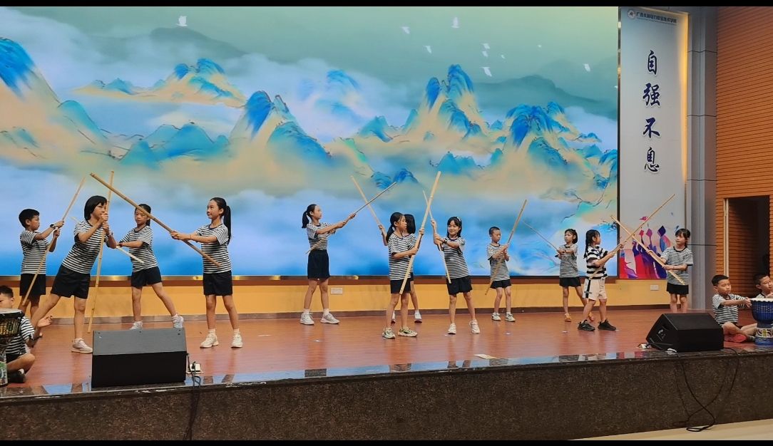 研学活动围绕“探寻非遗瑰宝,传承文化根脉”主题,精心设置了“赏、学、创、演”四大环节,内容丰富。在元宇宙科技展览厅,3D动画生动展示了榫卯木构的精妙构造,深入浅出的讲解让小学生们直观领略到其独特魅力。漆扇制作体验区里,孩子们在指导老师和志愿者的耐心传授下,充分发挥想象力,在扇面上描绘出充满童趣的画作。而户外足球场上的竹竿舞和扁担舞体验活动则热闹非凡,学生们在老师的示范下,逐渐掌握了舞蹈技巧,尽享传统民俗舞蹈的魅力。
