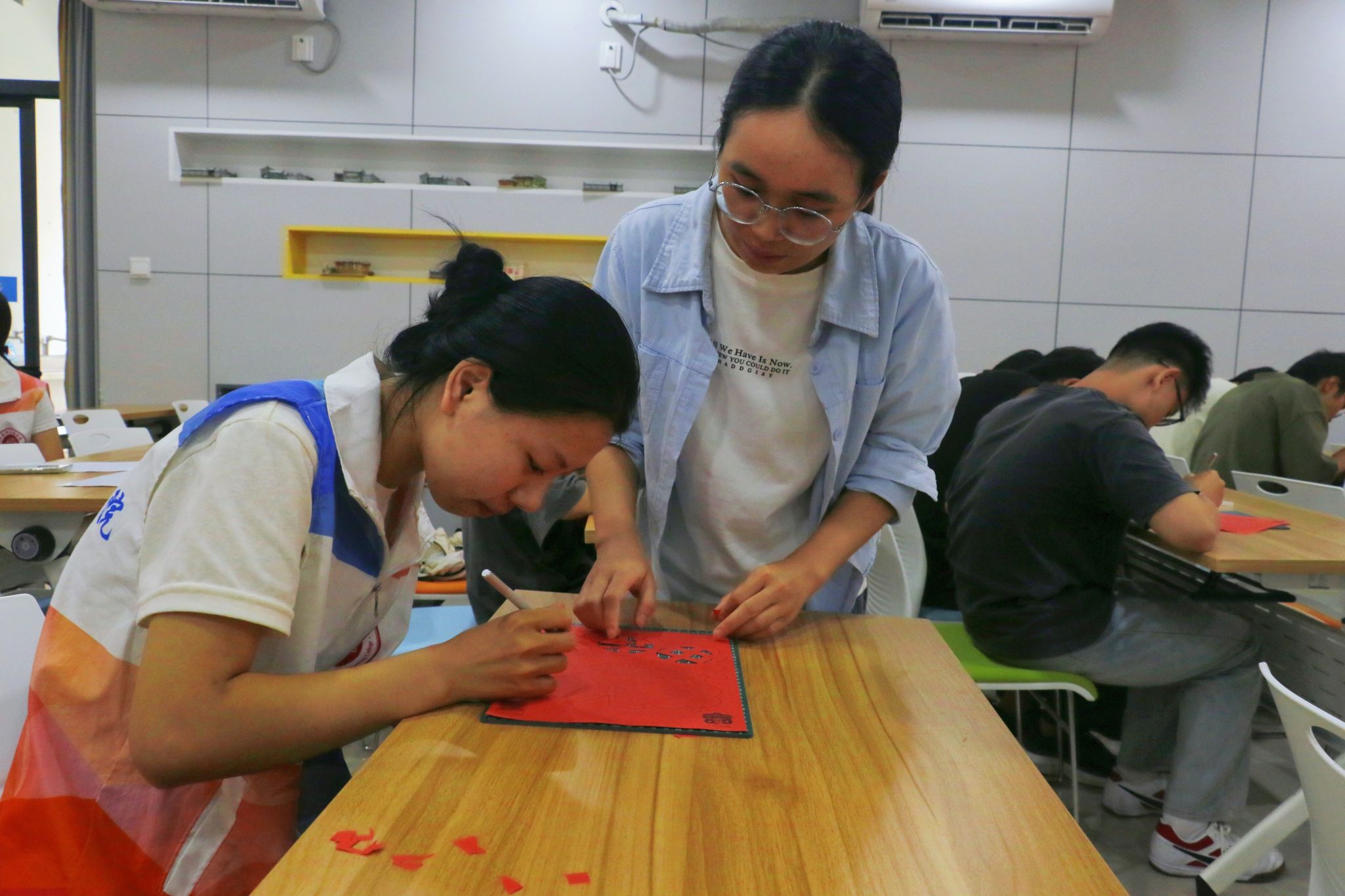 薪火工作室联合土木建筑工程学院团委开展“双节同庆剪锦绣,家国同心谱新篇”非遗剪纸手工体验活动