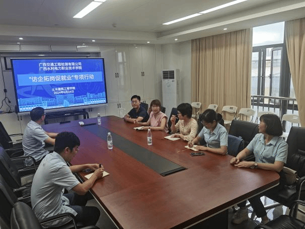 2024625日,土木建筑工程学院路桥工程教学团队吕春雨刘艺荣周姗姗、曾红丹行4人赴广西交通工程检测有限公司开展“访企拓岗促就业”专业调研活动。广西交通工程检测有限公司隧道岩土检测部部长黄家华、副部长罗伟斌及我院1名岗位实习学生参加座谈会。