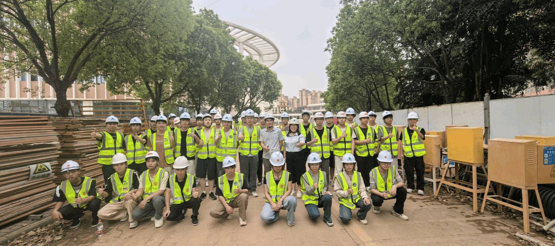 [本网讯]4月23日上午,土木建筑工程学院工程管理专业学生在指导老师陶丹、黄毅的带领下,走进里建校区大学生活动中心、教研综合楼的施工现场开展工程见习活动,通过实地观摩深化专业理论与实践融合。