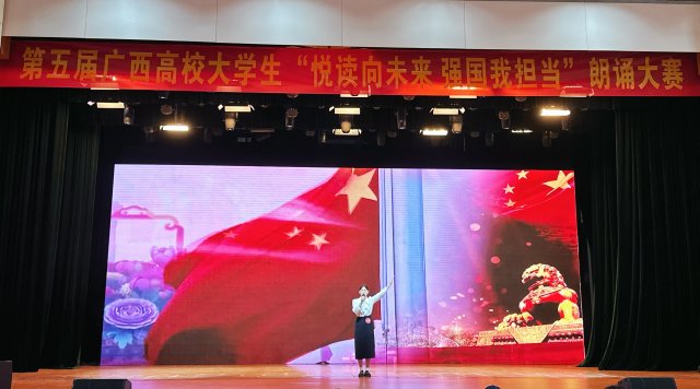 [本网讯]2023年11月4日,第五届广西高校大学生“悦读向未来 强国我担当”朗诵大赛已圆满落下帷幕。pp电子参赛选手经济管理学院2023级文秘1班黄月兰最终斩获二等奖的好成绩。