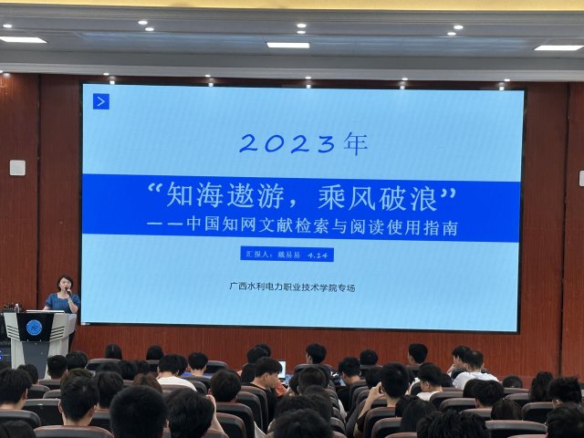 [本网讯]2023年4月14日下午,图书馆邀请中国知网广西分公司专业讲师戴易易到校给学生开展 “知海遨游,乘风破浪——中国知网文献检索与阅读使用指南”专题讲座,讲座会场设在里建校区教学楼报告厅,学校学生代表共270多人参加了讲座。