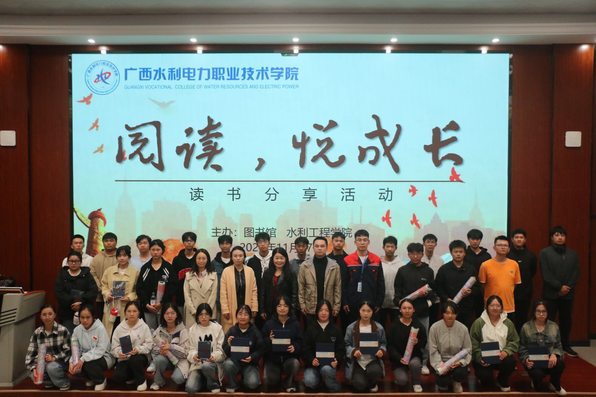 [本网讯]为引导2024级新生多读书、善读书、读好书的良好习惯,不断提升人文素养和综合素质,11月27日,图书馆联合水利工程学院在里建校区开展“阅读,悦成长”读书分享活动。图书馆副馆长谭柳青、水利工程学院副院长李小莲和教师、辅导员代表及2024级定向班全体学生参加此次活动。