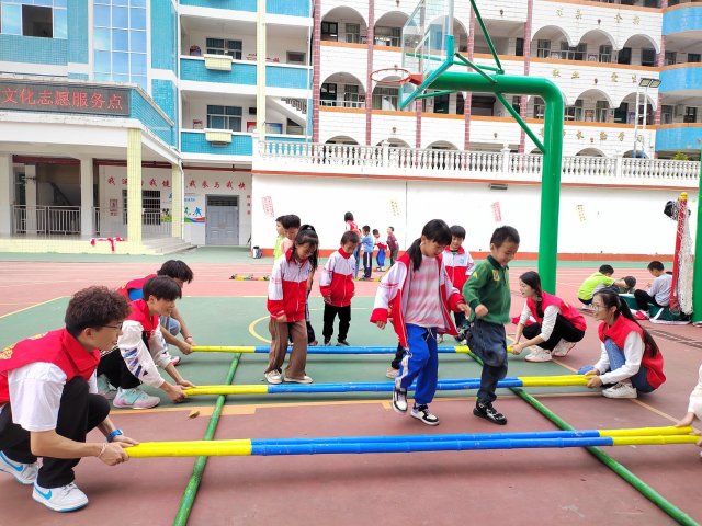 经过4个小时的车程,抵达九圩镇中心小学,该校校长韦俊介绍说:“目前,学校共有29个班,但没有一位音乐老师;劳动教育仅限于教会内宿学生基本的生活技能;2002年至今,一直没有专业的美术老师,美术课都由其他任课老师兼任;体育教育也是学校的短板”。为此,参加活动的师生发挥自身专业特长,分组与九圩镇中心小学的师生们开展了民族传统体育体验、中英文朗诵中国经典诗词、电商主播培训等教学服务活动,并捐赠了篮球、绣球等一批体育器材。为了持续开展教育帮扶,九圩小学成为pp电子“劳动教育、美育教育、民族传统体育教育实践基地”及“语言文化志愿服务点”,共建共享优质资源,共同为乡村教育高质量发展做贡献。