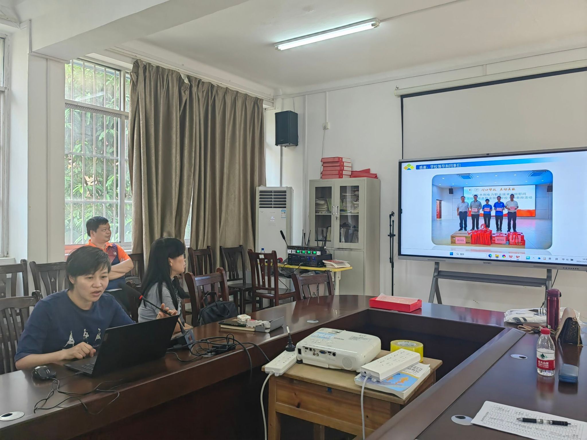 周建英老师,通过“感谢”“感触”“感动”三部分,分享了自己在天等职校为期一年半的支教故事。周老师凭着自己对教学的一腔热爱,克服种种困难,扎根山区职校,撰写教案、制作课件、指导比赛,哪里需要就到哪里去。支教工作得到支教学校领导、同事和学生的一致好评,同时收获了学生家长的信赖与信任。两位支教老师以自身行动诠释了水电人无私奉献、勇于担当的精神。