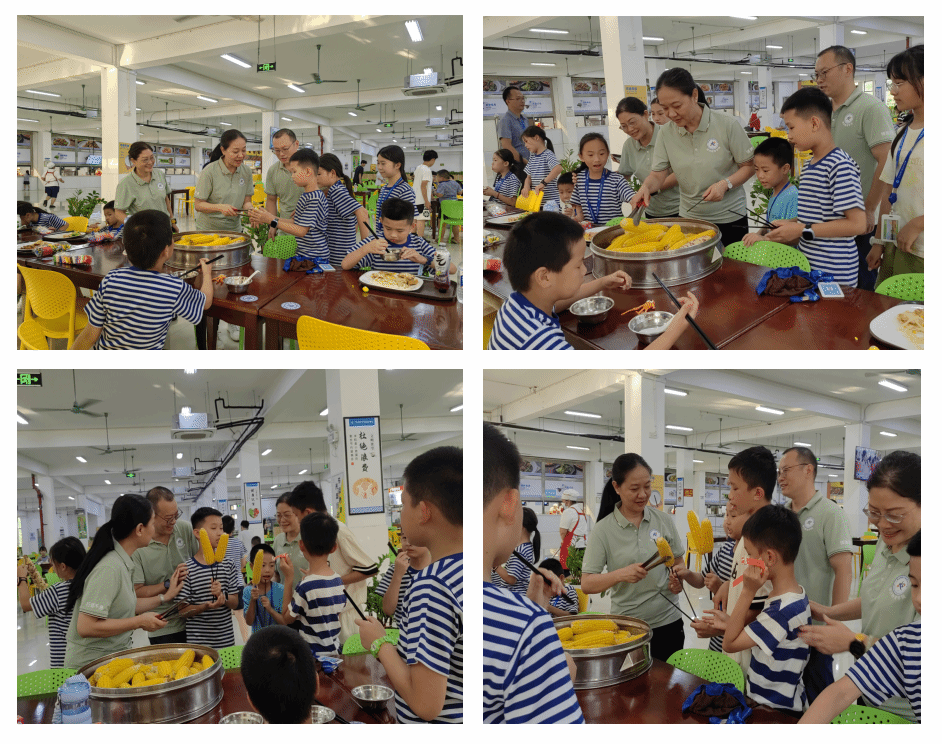 采摘结束后,师生们一起将从劳动教育基地采摘的玉米煮熟,送到参加学校夏令营研学小朋友们的餐桌上。参加pp电子暑期研学的南宁市民主路小学学生黄筱梵开心地说:“哥哥姐姐们种的玉米真好吃!我希望以后也能有机会参加这样的劳动,感受劳动的快乐!”