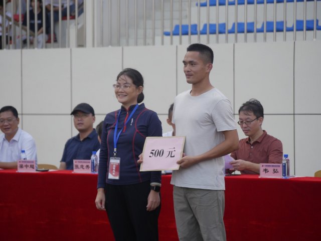 在运动会闭幕式上,学校副校长蒋文沛分别为获得男、女团队总分前八名的代表队颁奖。通识教育学院院长、本次大赛的总裁判长韦弘为破纪录奖学生颁奖。