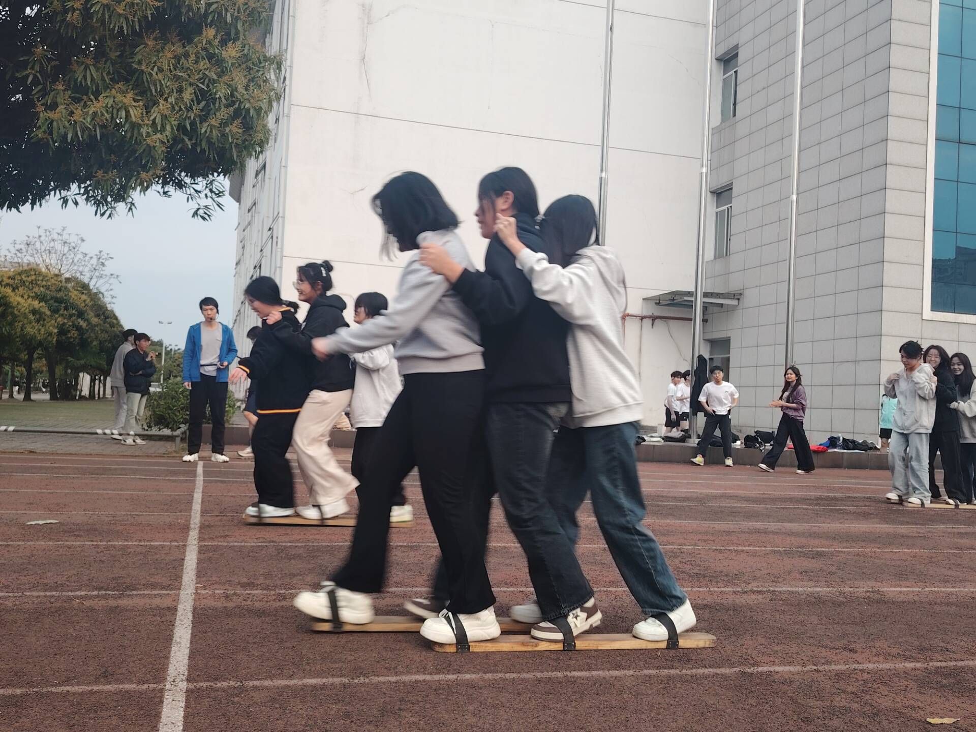 里建校区50米板鞋竞速合影