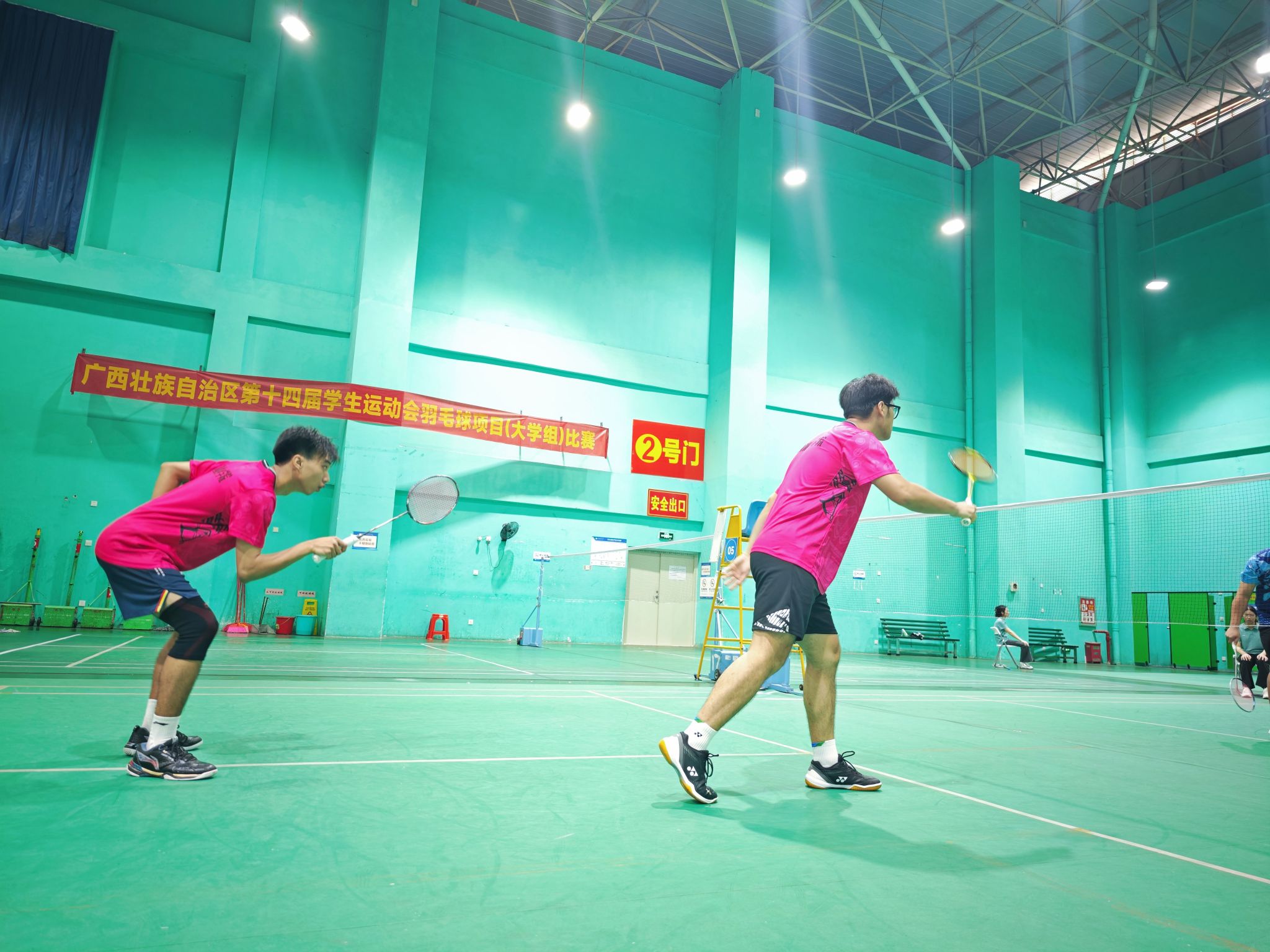 [本网讯]7月8-11日,广西第十四届学生运动会羽毛球项目(大学组)比赛分别在广西财经学院、广西民族大学两校区举行,本次比赛学校共派出10名队员参加。