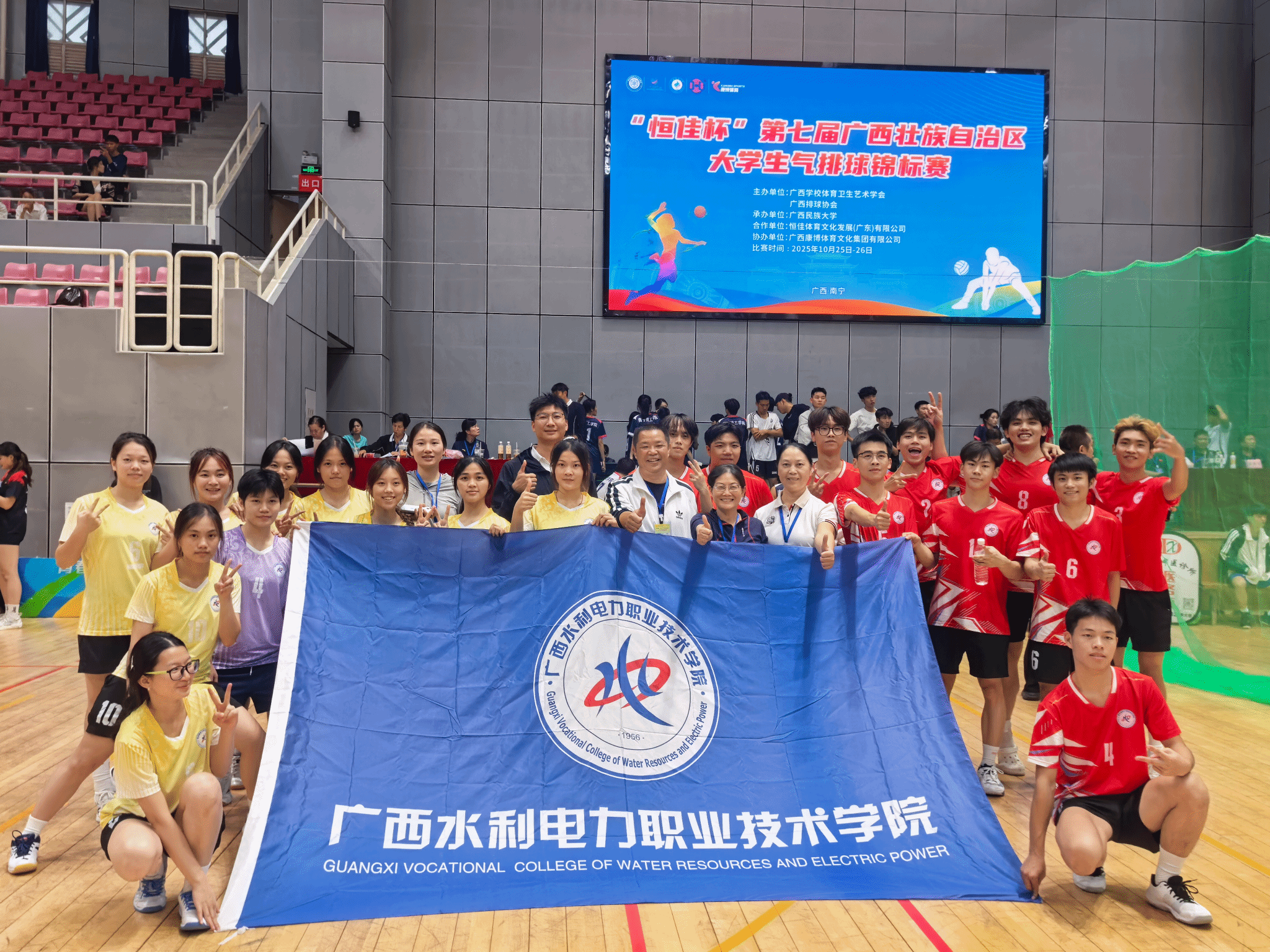[本网讯]10月24至26日,“恒佳杯”第七届广西壮族自治区大学生气排球锦标赛在广西民族大学举行。学校气排球队凭借出色的战术配合、顽强的拼搏精神,在男子组与女子组的比赛中双双斩获亚军,不仅刷新了学校在该赛事中的历史最佳战绩,更展现了水电学子奋勇争先、团结协作的精神面貌。