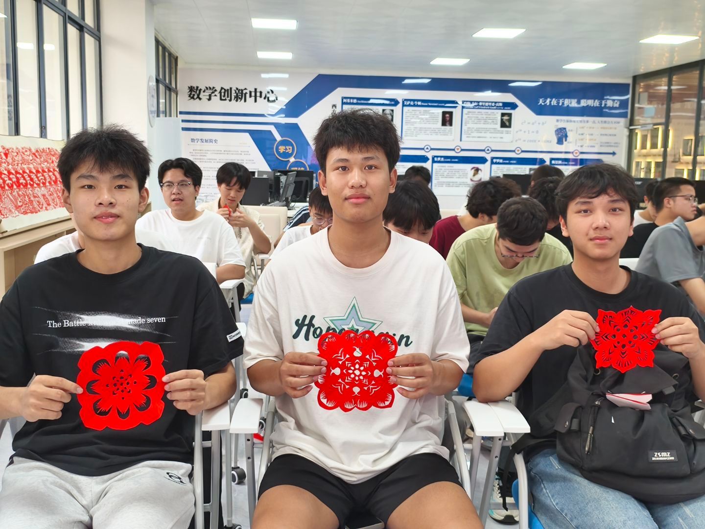 在讲座中,钟昀睿老师深入浅出地讲解了剪纸艺术的起源、发展历史,以及剪纸艺术在中华优秀传统文化中的重要地位,分享了自己多年来投身剪纸艺术的经历与感悟,从创作灵感的获取到作品背后的故事,从传统技艺的坚守到创新发展的探索,都一一呈现于同学们面前,让大家沉浸其中,对剪纸艺术有了更深入的认识和了解。随后,同学们通过剪纸实操,不仅了解了中国剪纸的基本技艺和技术要点,还亲身体验了剪纸艺术所蕴含的传统文化和艺术魅力。活动过程中,24数控2班的覃声少伟同学颇有感触地说:“作为数控专业的学生,我意识到剪纸艺术中蕴含的精湛技艺和专注精神,与我们专业学习所需的严谨态度不谋而合,我要把剪纸中那种专注、精细的态度融入专业学习,努力提升自己的专业技能,为未来成为一名优秀的专业技术人才打下坚实基础!”