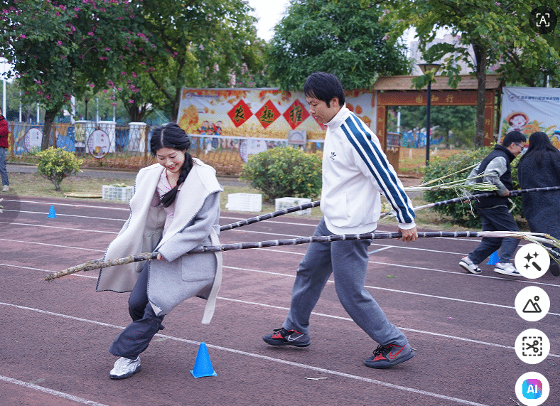 农作物拼字竞技与扛甘蔗赛跑两大特色活动成为全场焦点,将“农趣”与“推普”的融合推向高潮。交通工程学院和自动化工程学院的同学们巧用玉米、红薯等农作物拼字竞技,精心拼接出“五谷丰登”字样。大家在分工协作中强化了国家通用语言文字的应用意识,让推普工作变得生动鲜活。紧接着的教师扛甘蔗赛跑紧扣广西地域特色,考验了教师的协作能力和体能。师生们在活动实践中感受劳动的艰辛与收获的喜悦,深化了对“劳动创造价值”的认知。