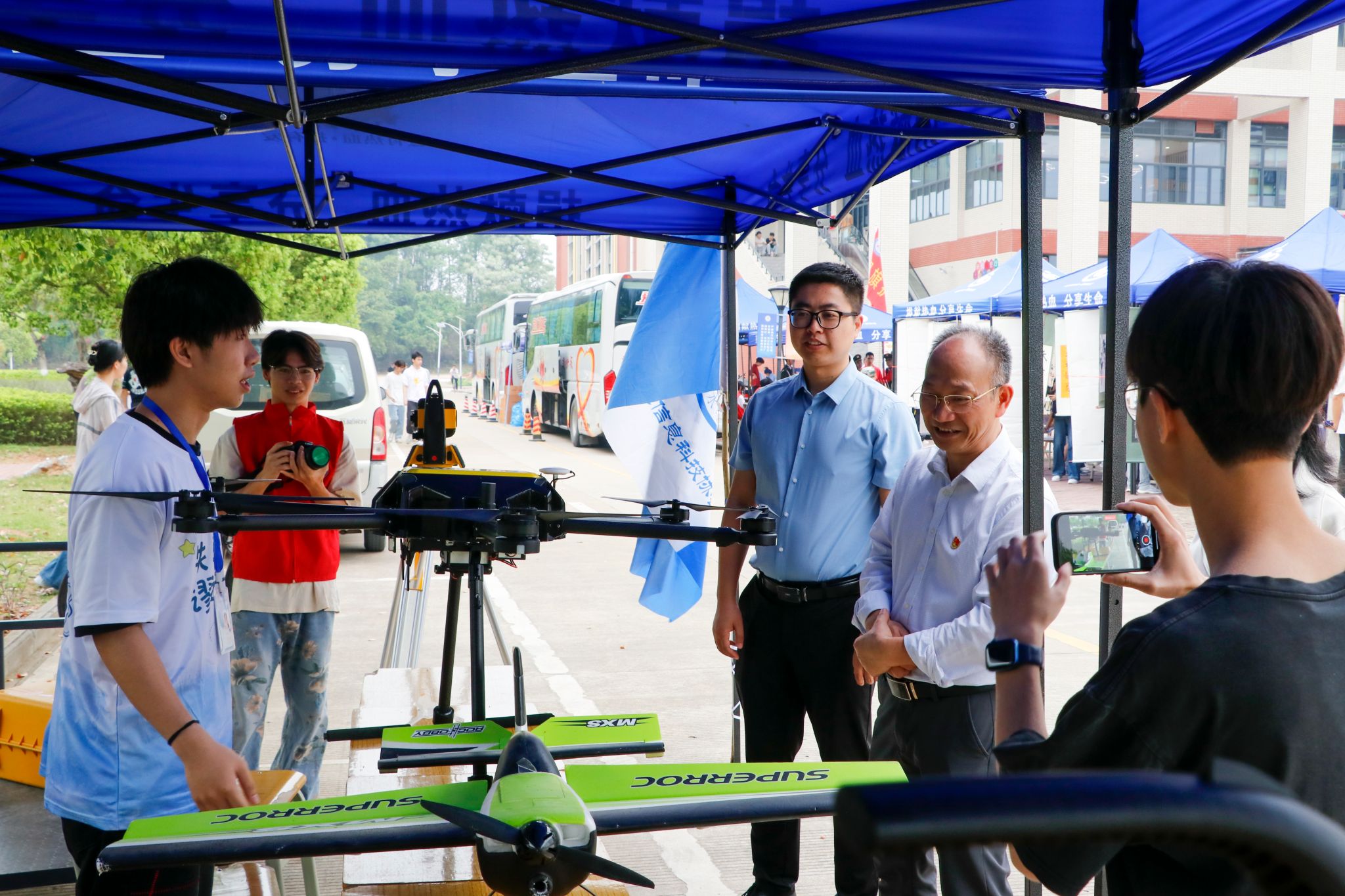 邓书记在地理科技协会展示区与学生进行交谈