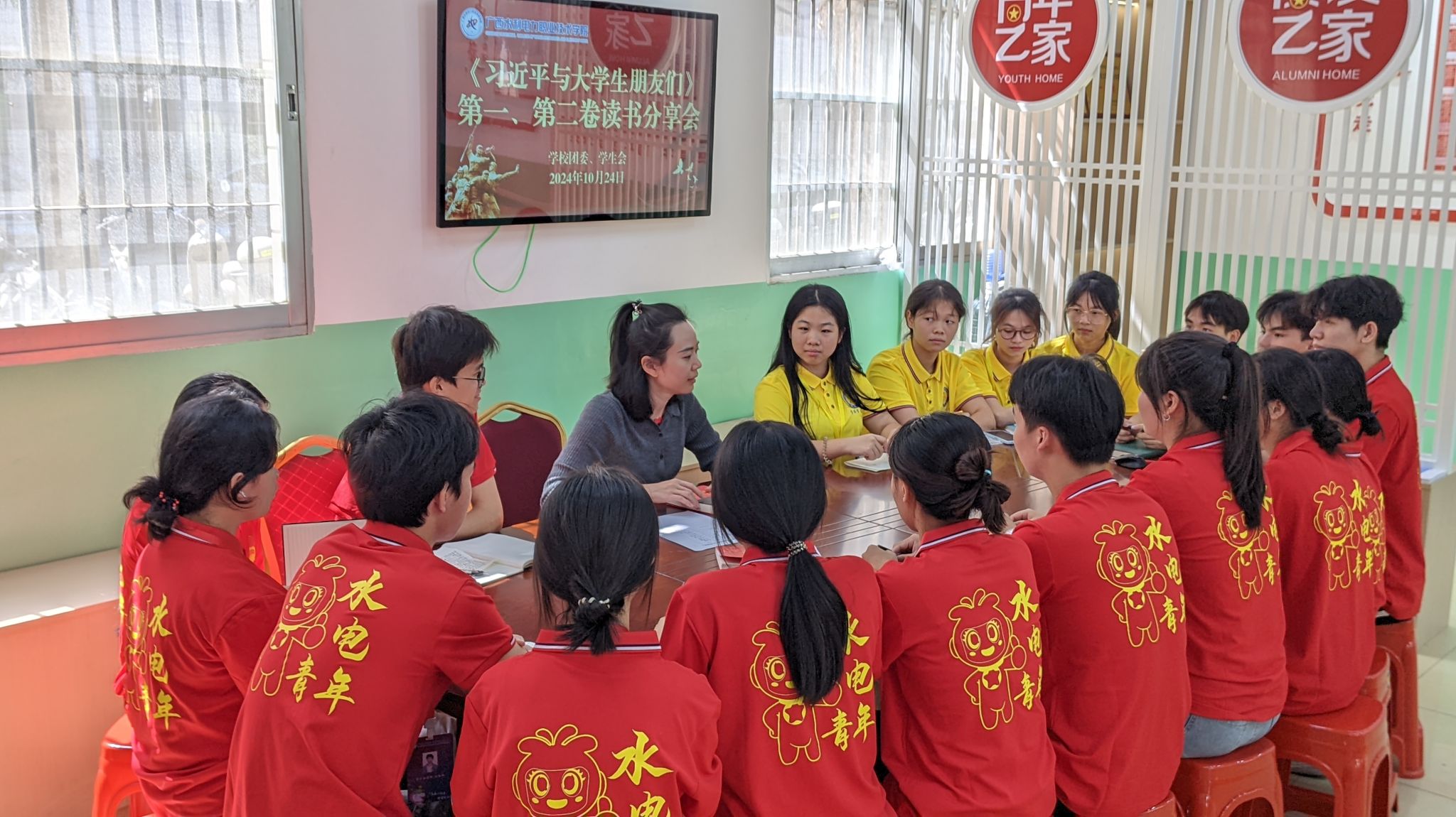 [本网讯]10月24日,团委党支部在长堽校区经管楼1-8室、里建校区和园一站式大厅同时开展《习近平与大学生朋友们》读书分享会。学校团委副书记梁卉、教师党员段喜艳、校团委、学生会代表共计60余人参加本次读书分享会。