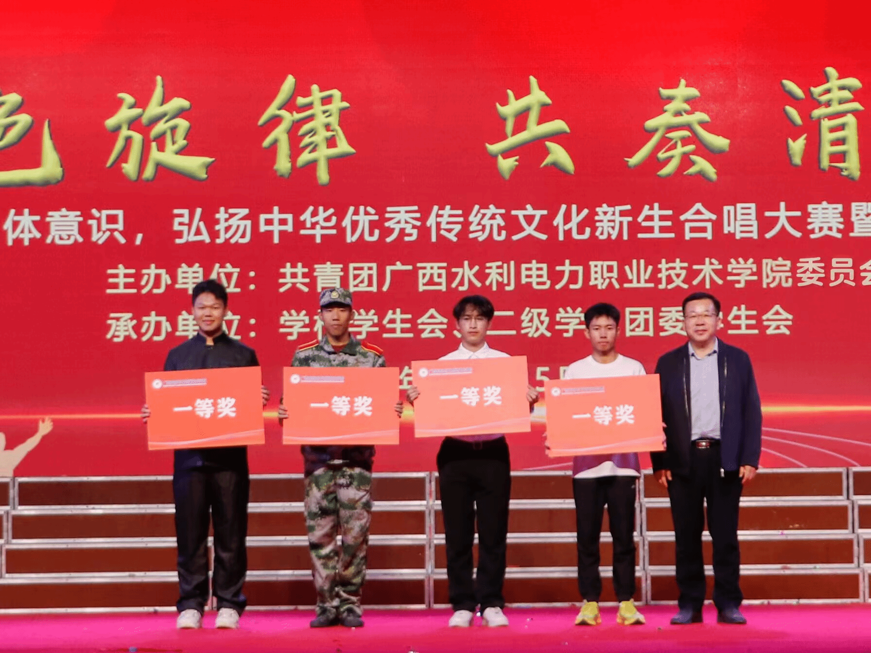 最后,经过激烈角逐,来自土木建筑工程学院24级室内2班和24级市政班《在灿烂的阳光下》与电力工程学院24级电力1班和24级供电1班《国家》荣获合唱比赛一等奖,交通工程学院24级智网1班和24级智网2班《让青春在奋斗中闪光》与电力工程学院24级新能源2班和24级供电3班《崛起的时代》获得了诵读比赛一等奖。李林为获得一等奖的队伍颁奖。