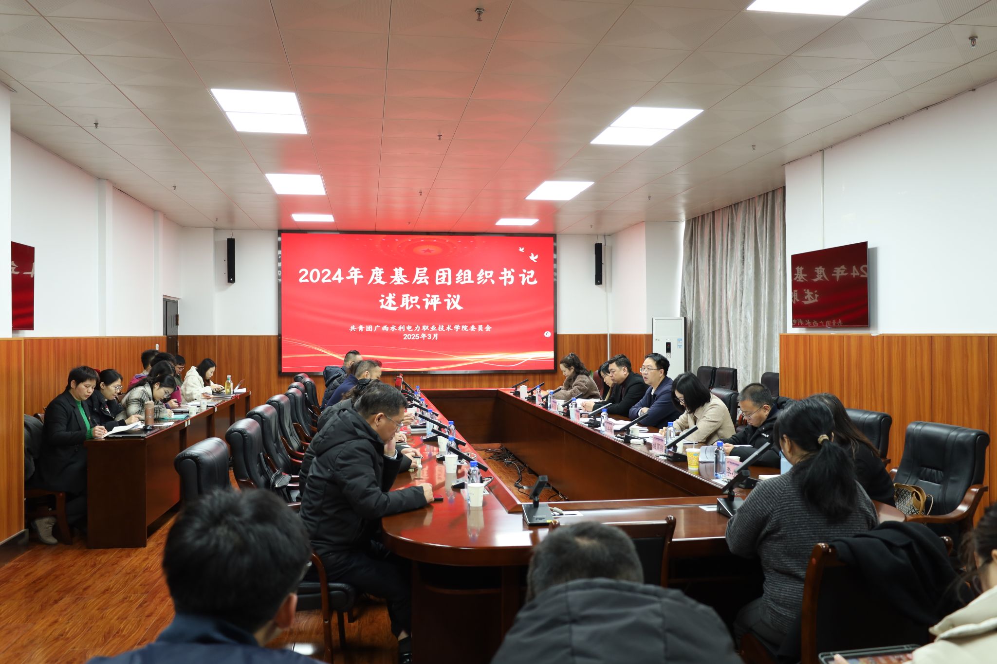党委宣传部、党委学生工作部(学生工作处)、各二级学院党总支书记等部门相关负责人参会,各院级基层团组织负责同志参会并进行现场述职。(伍思嫒/图文)