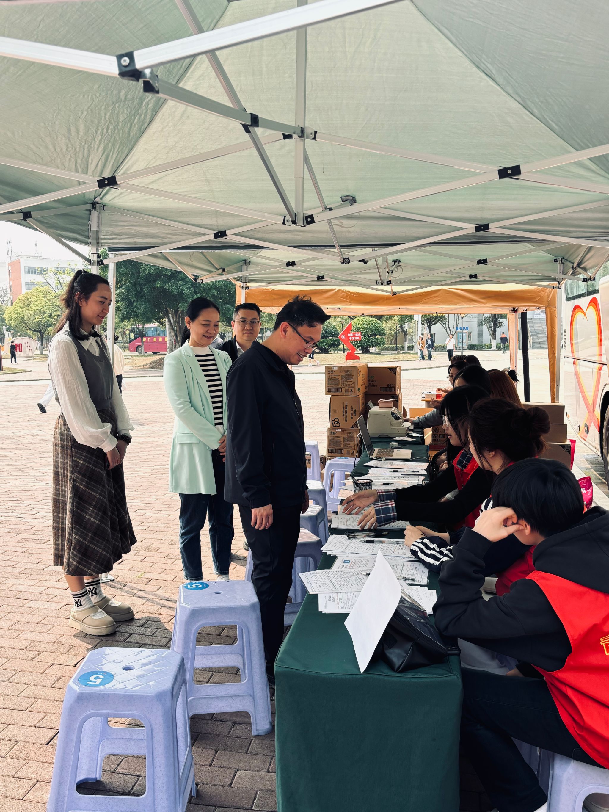 [本网讯]3月21至23日,学校联合南宁中心血站在里建校区开展“青春担当·热血领航”无偿献血活动。活动首日,学校校长刘存香、党委副书记莫海燕亲临现场指导工作。