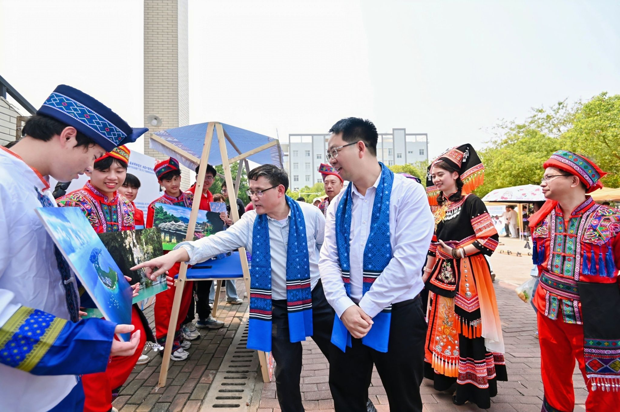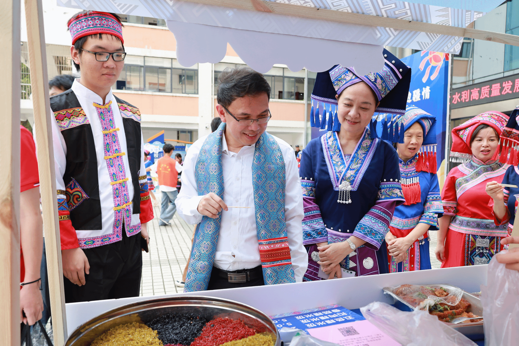 学校校长沉浸式体验民族文化风情集市