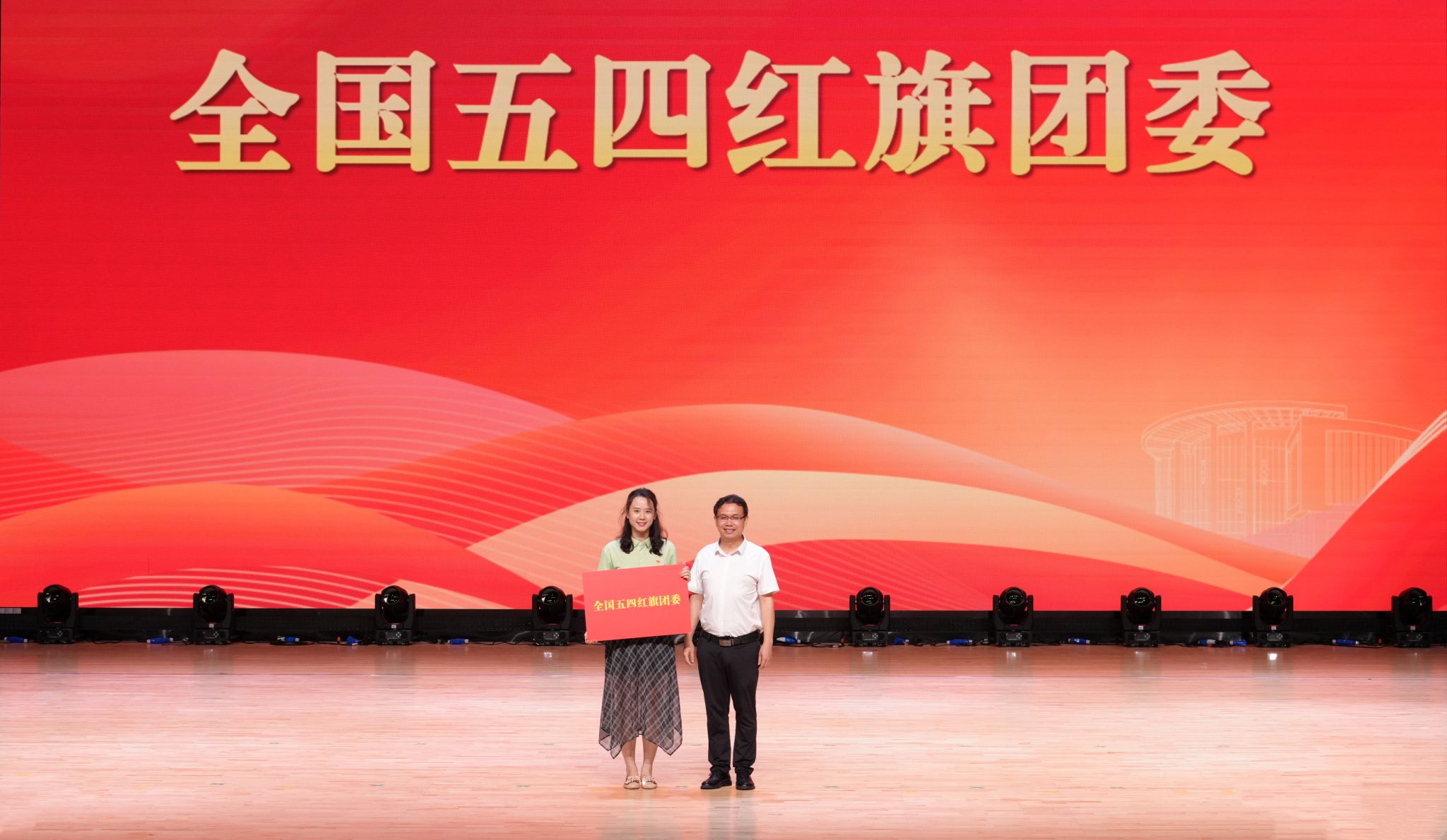 学校校长刘存香为荣获全国五四红旗团委颁奖