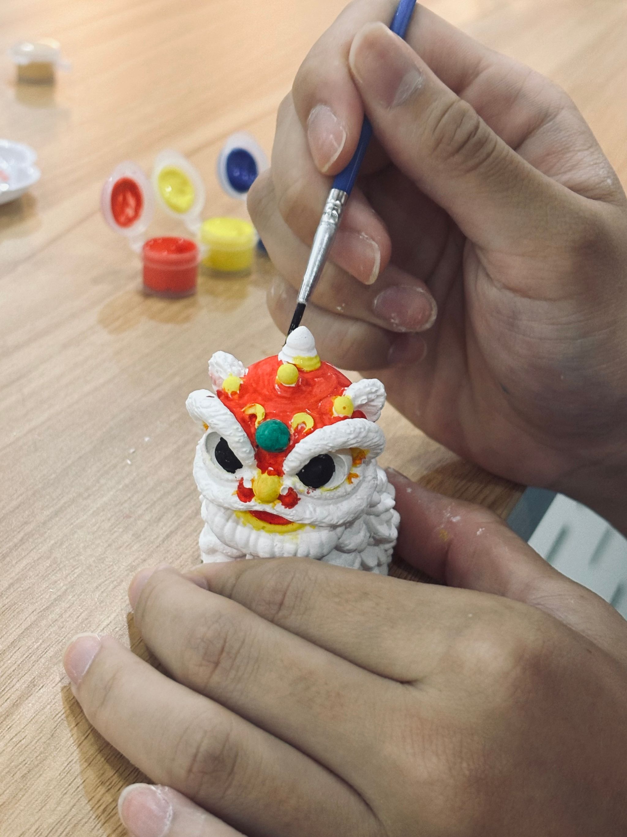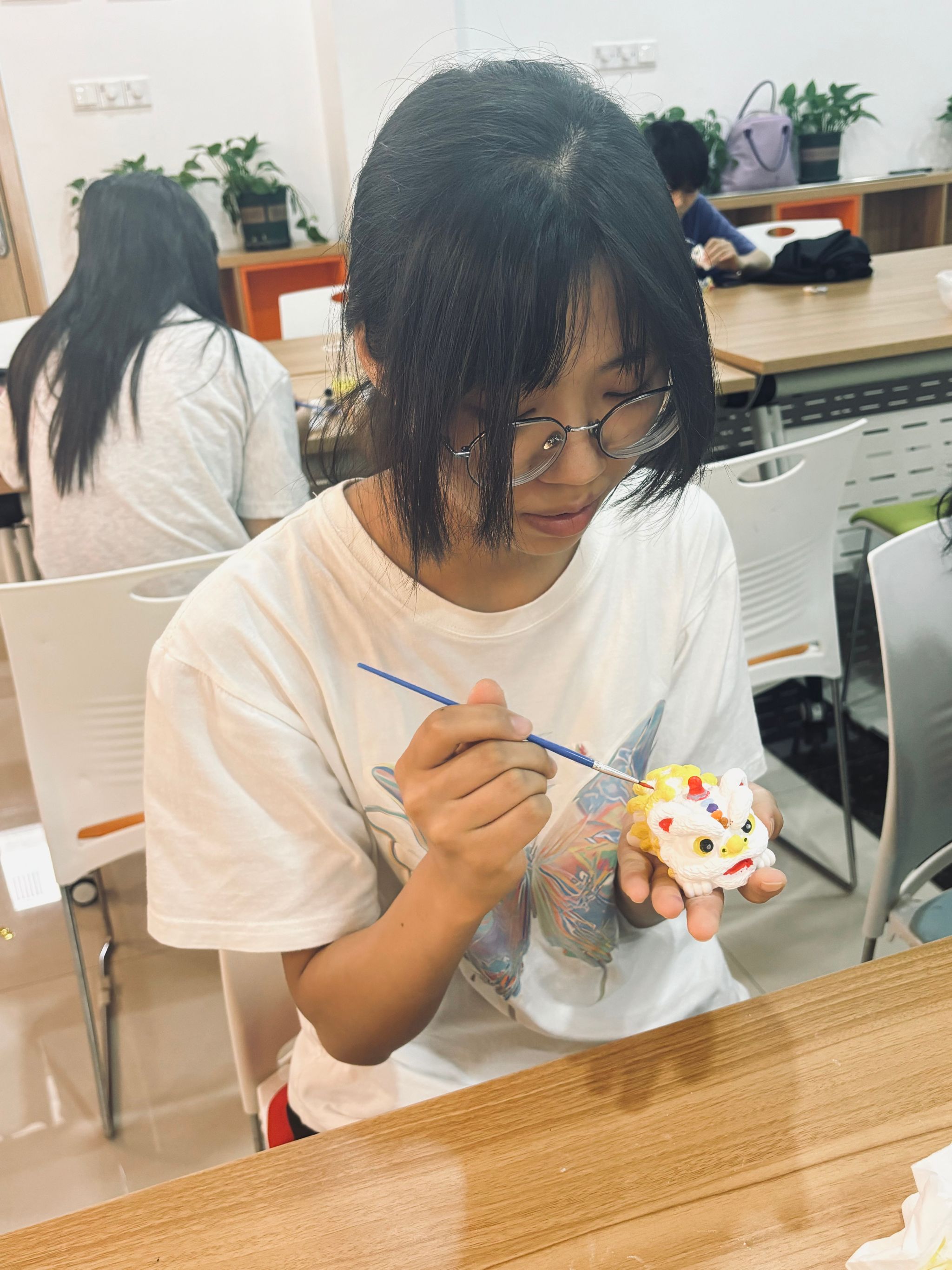 匠心工坊——手作龙狮之魂。艺术节特设的龙狮道具制作工坊成为师生体验传统技艺的热门区域。工坊划分为彩绘狮头和龙鳞制作两个主题体验区。在彩绘狮头区,参与者们用细腻的笔触在狮头上勾勒出传统纹样,体验佛山扎作技艺的精妙。龙鳞制作区则聚集了不少水利工程和土木建筑专业的学生,他们将专业学习中的结构思维运用到龙身鳞片设计中,制作出既符合力学原理又富有艺术美感的龙身。