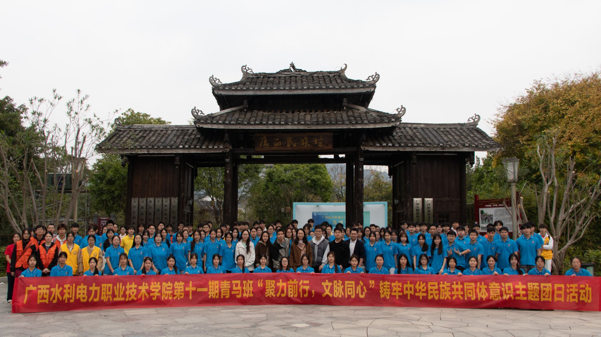 [本网讯]12月5日,在学校团委党支部和“青马工程”班班主任的带领下,第十一期“青马工程”培训班全体学员与校团委、学生会骨干一同前往广西民族博物馆、广西民族村,开展以“聚力前行,文脉同心”铸牢中华民族共同体意识为主题的党团日活动,师生在实地走访与沉浸体验中同上一堂生动的德育课堂。本次活动共计130余名师生参加。