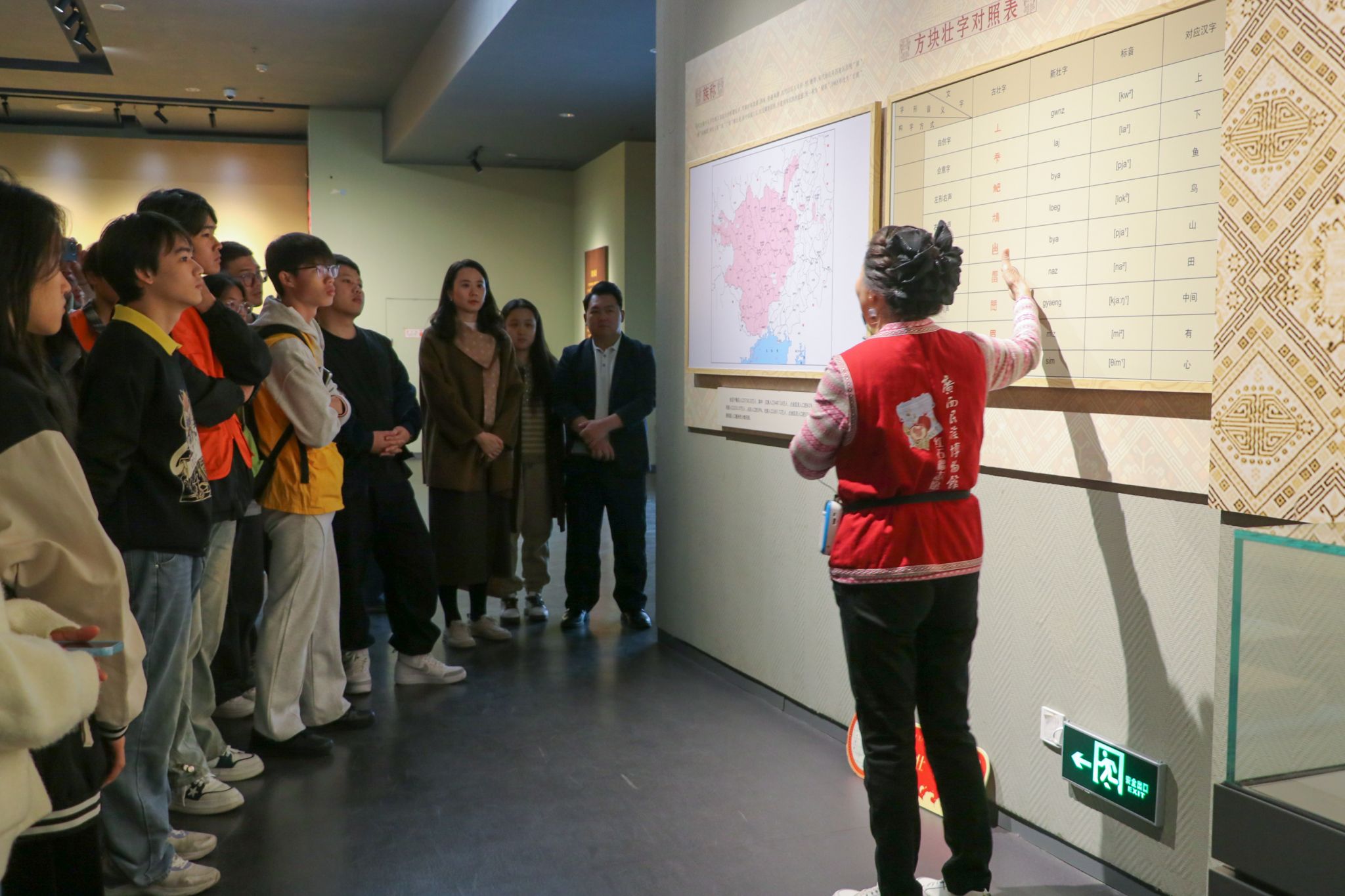 团委党支部书记梁卉强调,本次联合开展的主题党团日活动是深入推进“党建带团建”的生动实践。她表示,党支部带领“青马工程”学员走进这堂“行走的德育课”,正是要将理论教育与实践场景深度融合,引导青年在实地体验中深化对国家观、民族观的理解。她希望在场的同学们不断增进对中华民族共同体的认同,自觉将个人成长融入民族团结与时代发展的洪流,努力成为有理想、敢担当、能吃苦、肯奋斗的新时代青年。(梁钦健、伍思嫒/图文)