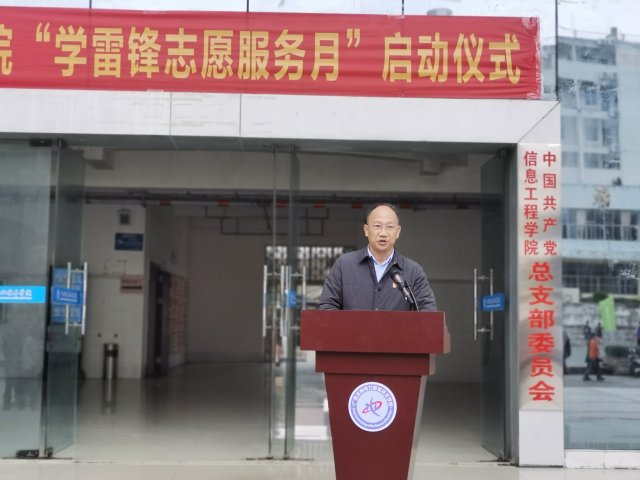 [本网讯]为深入学习贯彻党的二十大精神,推动学雷锋志愿服务活动,2月24日,信息工程学院举行“学雷锋志愿服务月”启动仪式。学校纪委书记邓文勇,信息工程学院党总支书记张志秀、副院长钟文基出席活动,信息工程学院党员先锋队和青年志愿服务队参加本次活动。