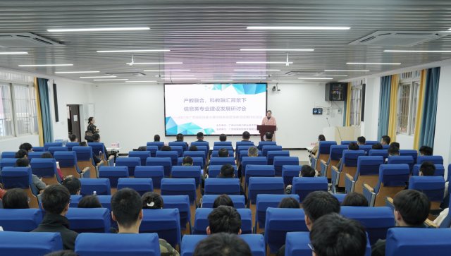 南宁师范大学王忠昌博士作主题为《引领高职院校高水平专业()持续竞争力提升的七个关键向度》的讲座,为提升打造高水平专业(群)指明了方向;信息工程学院副院长钟文基作《引产入校,以赛促教,产教融合,协同育人》主题讲座,分享了计算机网络技术专业建设历程,校企合作发展1+N多元产教融合,实现 双轮驱动、岗赛证融通卓越ICT人才培养;工作在不同岗位的优秀毕业生作了职业院校毕业生职业发展汇报,分享了他们在校阶段和就业后的个人发展经历;福建中锐网络股份有限公司分享《网络专业改革创新路径》报告和广西塔易信息技术有限公司分享《赋能产教,播种未来——ICT人才培育研讨》报告,从产教融合创新,丰富的产业服务生态和服务资源作了详细介绍,提供了产教融合的多重路径。