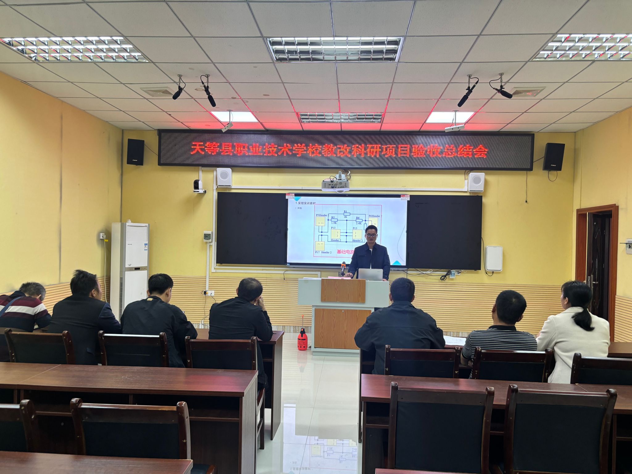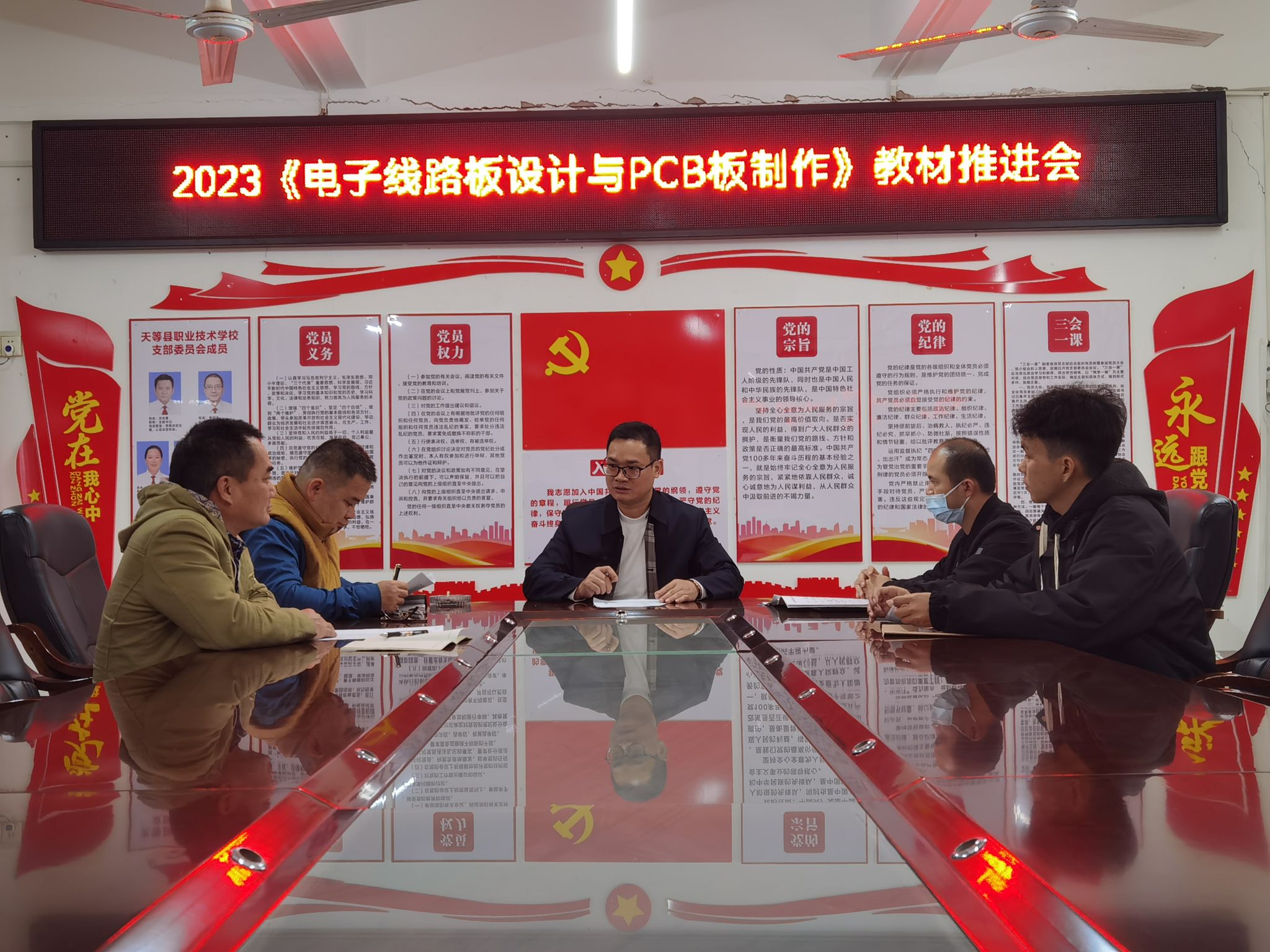 “有能力的老师想方设法调走了,留下来的老师普遍缺乏动手能力,不是不想给学生安排实验,主要是没经验、没做过、不敢作。”在专业课组例会上老师们纷纷说道。廖威老师通过“六个一”帮扶,投身到提升师资队伍水平的行动中:“梳理一次方案”,组织专业老师梳理人才培养方案;“参与一个课题”,借助派遣单位资源,安排老师们参与在研课题研究;“进行一次开发”,通过发动优秀校友资源募捐课题经费,联合广西水电职院信息工程学院电子技术团队,联合研制了“电子技术综合实验板”;“专攻一项比赛”,备好每一节公开课,亲自带领老师参加2023年教师教学技能比赛;“开发一本教材”,组织编写《电子设计与PCB制作》项目化教材;“参加一次培训”,带领本地7位专业教师到南宁参加技能鉴定培训。