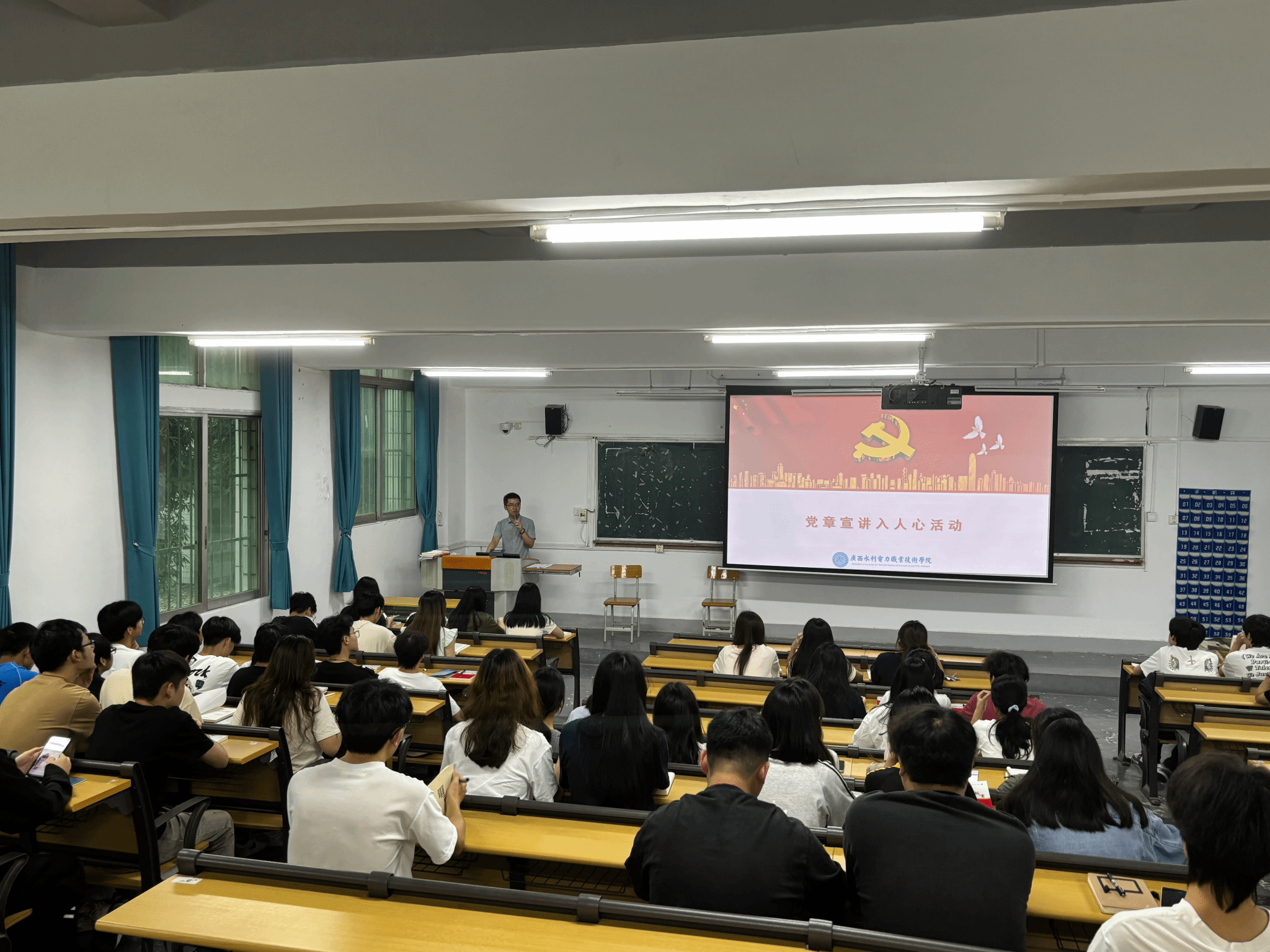 [本网讯]为深入学习贯彻党的二十大和党的二十届二中、三中全会精神,加强入党积极分子培养教育,5月25日下午,信息工程学院学生党支部书记黄诚在一教2-6给入党积极分子上了一堂《党章宣讲入人心》党课,学院24级88名入党积极分子参加学习。