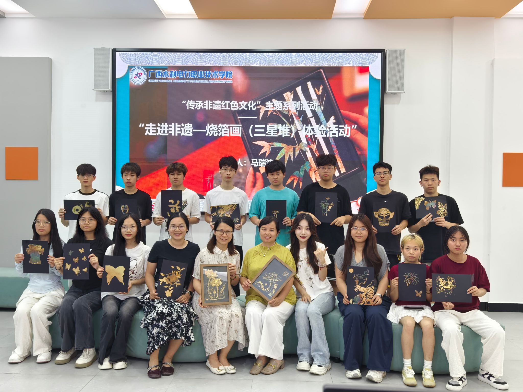 学工处副处长李泳强调“非遗是中华文明的基因库,红色文化是民族精神的火炬。此次活动将烧箔画与三星堆文化结合,既是传统工艺的创造性转化,更是对红色基因的现代诠释。我们鼓励大学生通过亲手制作烧箔画,感悟‘择一事终一生’的工匠精神,让非遗成为爱国主义教育的鲜活载体。