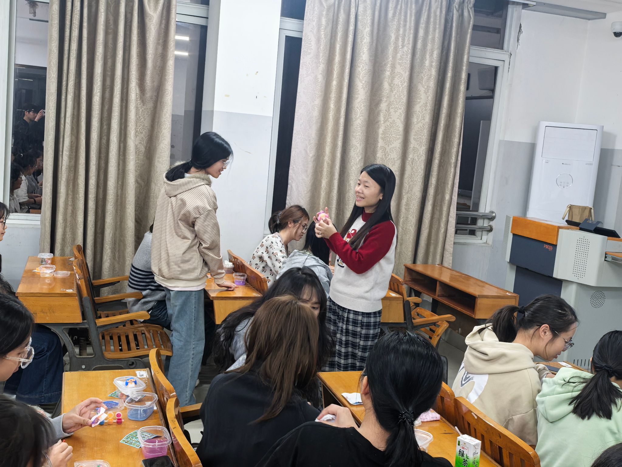 [本网讯]素白石膏晕染斑斓色彩,朋辈互动织就心灵纽带。12月3日,信息工程学院心理辅导站主办的“E心有你”系列活动——“生生共绘石膏娃娃”在第四教学楼8-3教室温馨开展,数位学生以笔为媒,在创作与交流中解锁心理关怀新体验。