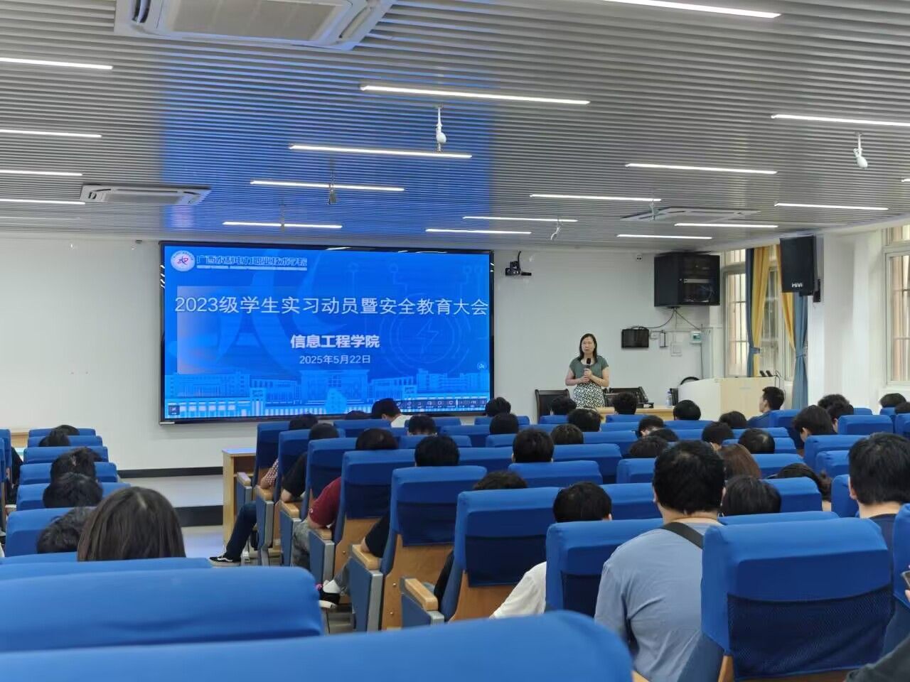 [本网讯]为切实推进2023级学生实习工作的开展,深入分析当前就业市场形势,积极引导学生主动融入高质量就业,充分落实2023级学生实习前期准备工作,5月22日-29日,针对不同专业,信息工程学院举办了2023级各专业学生实习动员会。学院院长宁爱民,党总支书记张志秀,副院长钟文基、禤健丽出席了动员会,相关专业负责人、指导老师和辅导员参与会议。