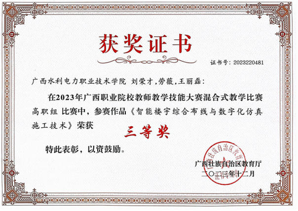 2.信息安全管理与评估:《信息安全管理与评估》连续 5 年位居广西榜首,在国赛中荣获三等奖 3 项。