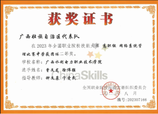1.网络系统管理:在广西职业院校技能大赛中,《网络系统管理》项目连续 9 年荣膺广西第一,在国赛中斩获二等奖 4 项、三等奖 4 项。