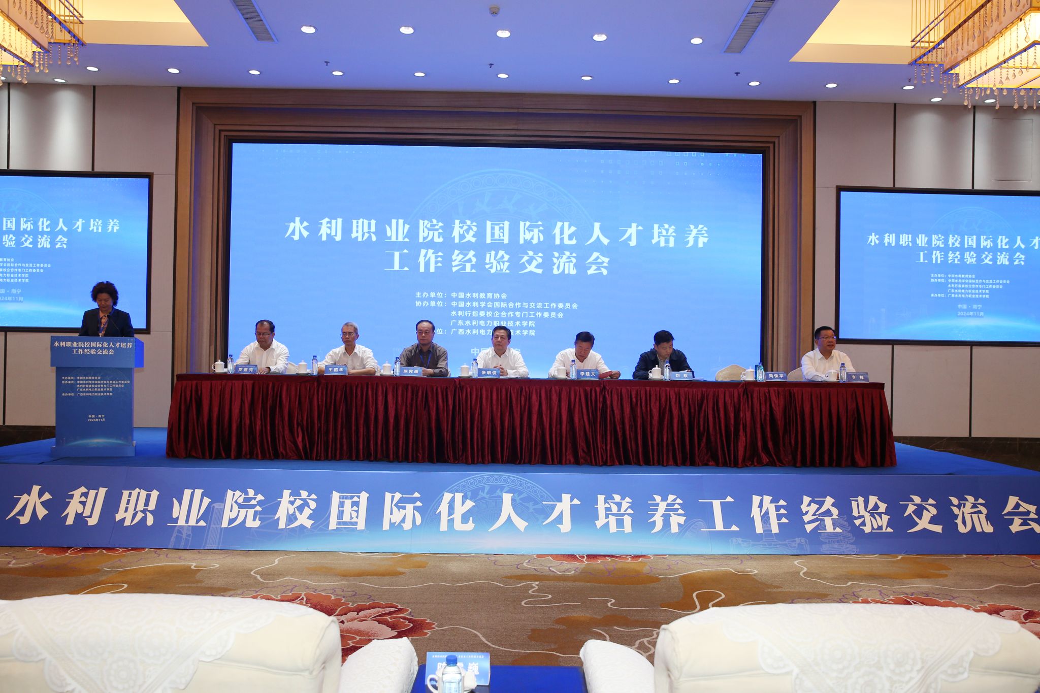 On November 19, the Experience Exchange Meeting on International Talent Cultivation in Water Resources Vocational Institutions officially commenced. Hosted by the China Water Resources Education Association and organized by our college, the event saw the attendance of over 150 experts and leaders from enterprises and institutions within the national water resources sector. Notable attendees included Zhang Mingjun, President of the China Water Resources Education Association; Wang Shaohua, Vice President and Secretary-General; Li Jianwen, Deputy Director and First-Level Inspector of the Water Resources Department of Guangxi Zhuang Autonomous Region; as well as Li Lin, President of our college.