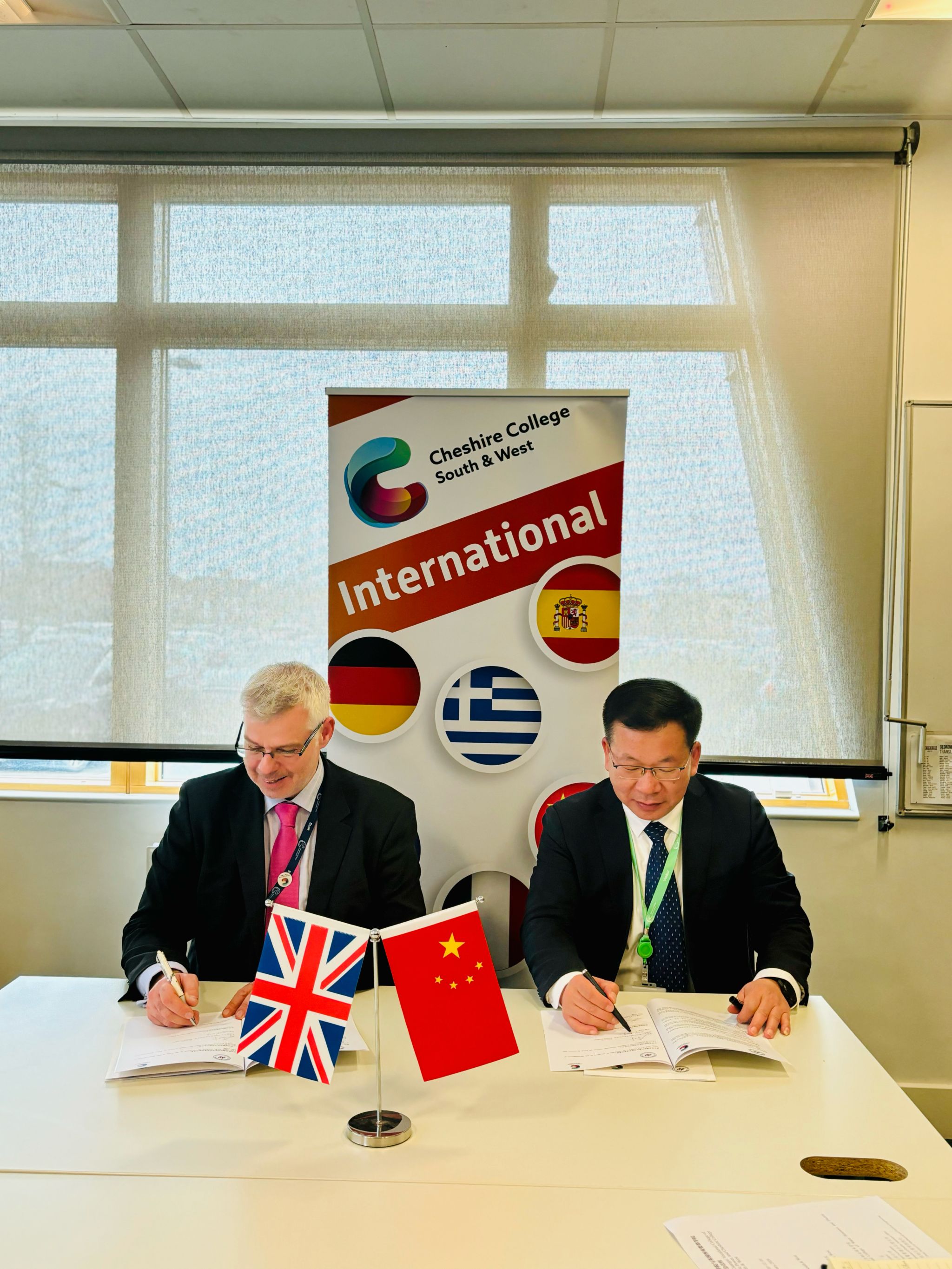 During their visit to Cheshire College South & West, the delegation was warmly received by Mr. Stelios Yalarakis, the school leader in charge of international exchanges, and Mr. Glyn Smith, the professional director of the International Office. The delegation toured the college's engineering lab, automotive repair workshop, aviation service training room, and healthcare and wellness teaching and training center, and learned about the college's professional and practical teaching programs. In a symposium, President Li Lin introduced the preparations for Sino-foreign cooperative education projects and future cooperation plans. Based on existing collaboration, the two institutions negotiated on the implementation of Sino-foreign cooperative education projects, the development of joint courses and educational programs, cooperative cultivation of outstanding students for admission to higher education institutions of both parties, 3+0 programs, teacher and student exchange programs, the co-construction of curriculum systems, and professional standards. The two institutions reached a consensus on advancing cooperation matters and signed a memorandum of understanding.