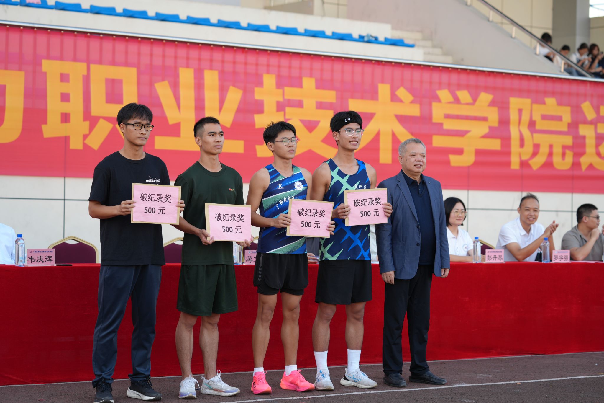 At the closing ceremony, Deputy Presidents Jiang Wenpei and Liu Cunxiang presented awards to the top eight teams in both the men's and women's categories and to record-breaking athletes. In his closing speech, Jiang Wenpei hoped that all teachers and students would continue to carry forward the spirit of "never saying die and striving for first place" displayed during the athletic meet and convert it into motivation for study and work, continuously pursuing new breakthroughs and higher honors.