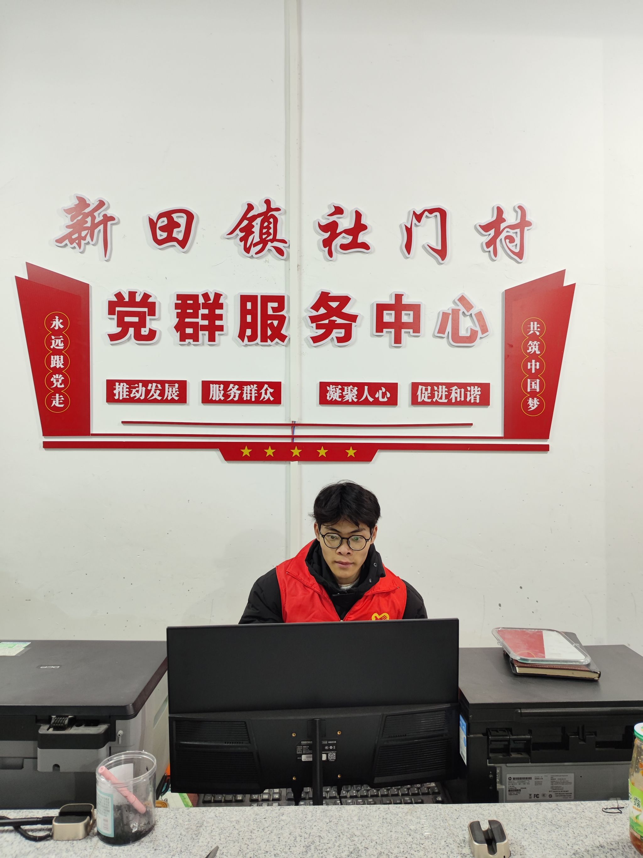 韦泽在坡丹村党群服务中心整理文件