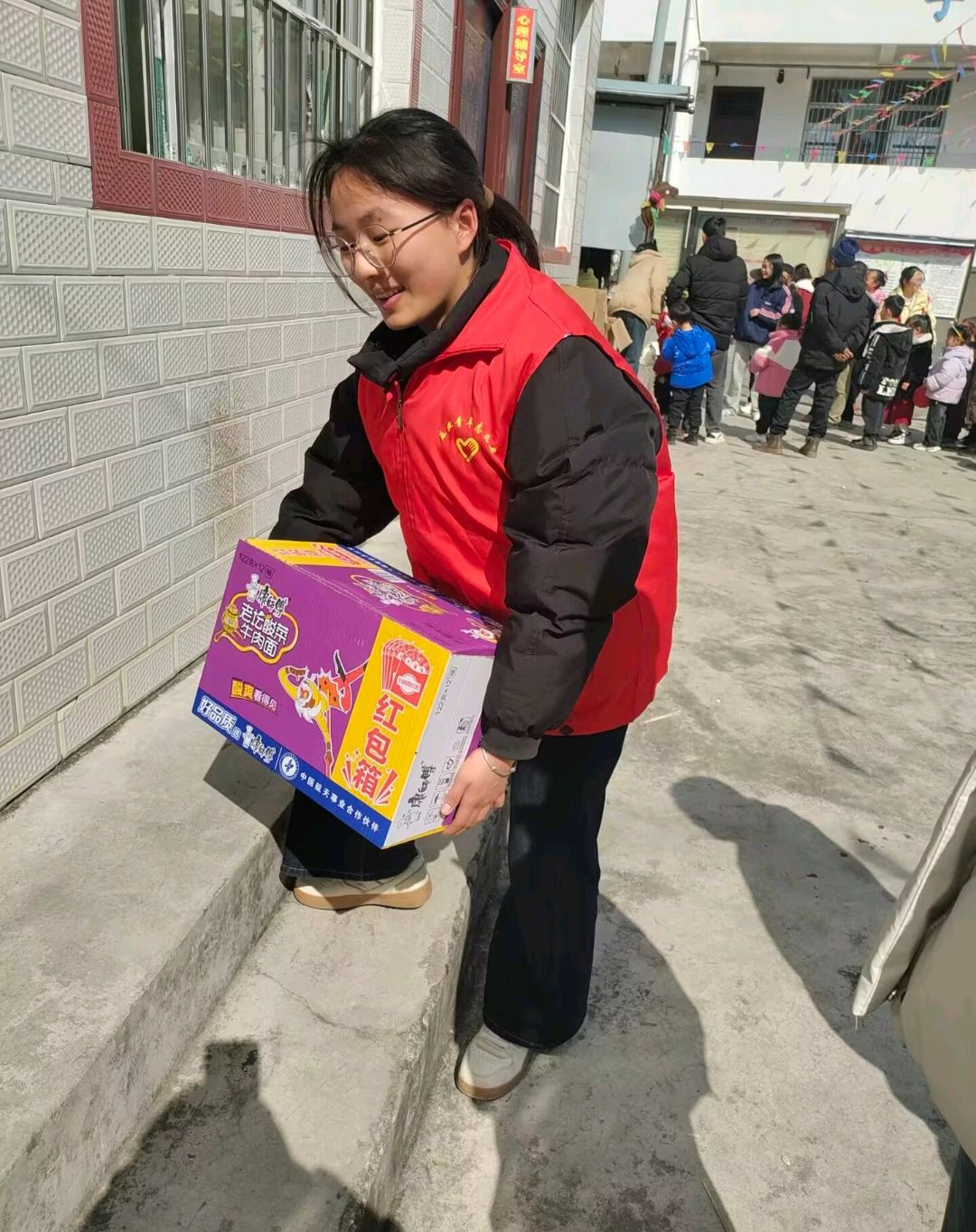 活动中,学子们化身雷锋精神践行者,身着红马甲清扫街道,以扫帚为笔,勾勒家乡整洁画卷;在社区搬运物资、整理物品,用汗水为群众活动筑牢保障;在医院自助机旁耐心引导,以细心服务传递温暖。无论是文明宣传、环境维护,还是便民帮扶,同学们始终以雷锋为榜样,将无私奉献融入点滴行动,在清扫街巷、搬运物资、服务群众的过程中,生动诠释雷锋精神的时代内涵。