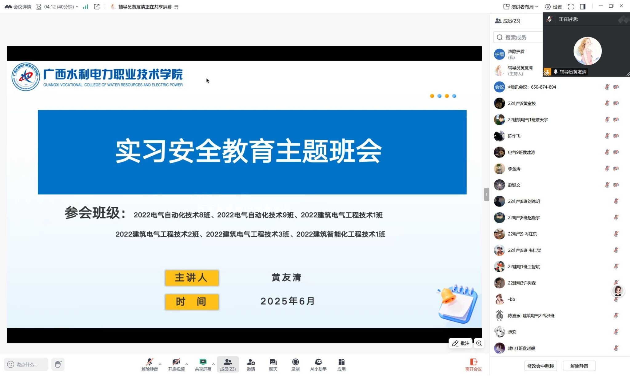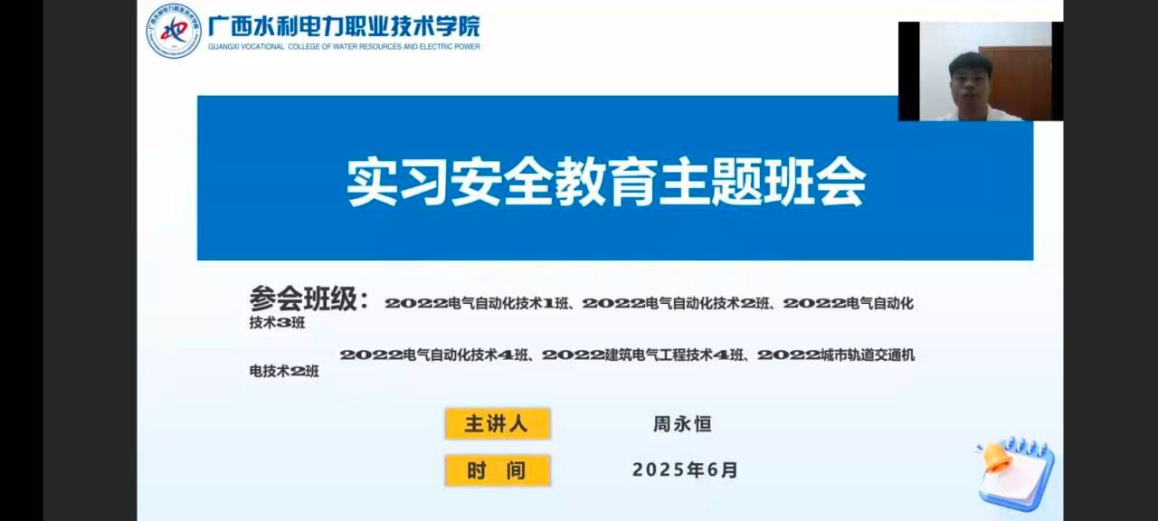 【本网讯】为进一步加强我院学生岗位实习安全管理,增强学生安全意识,确保实习安全。自动化工程学院辅导员于6月在线上召开了毕业班实习安全教育主题班会。