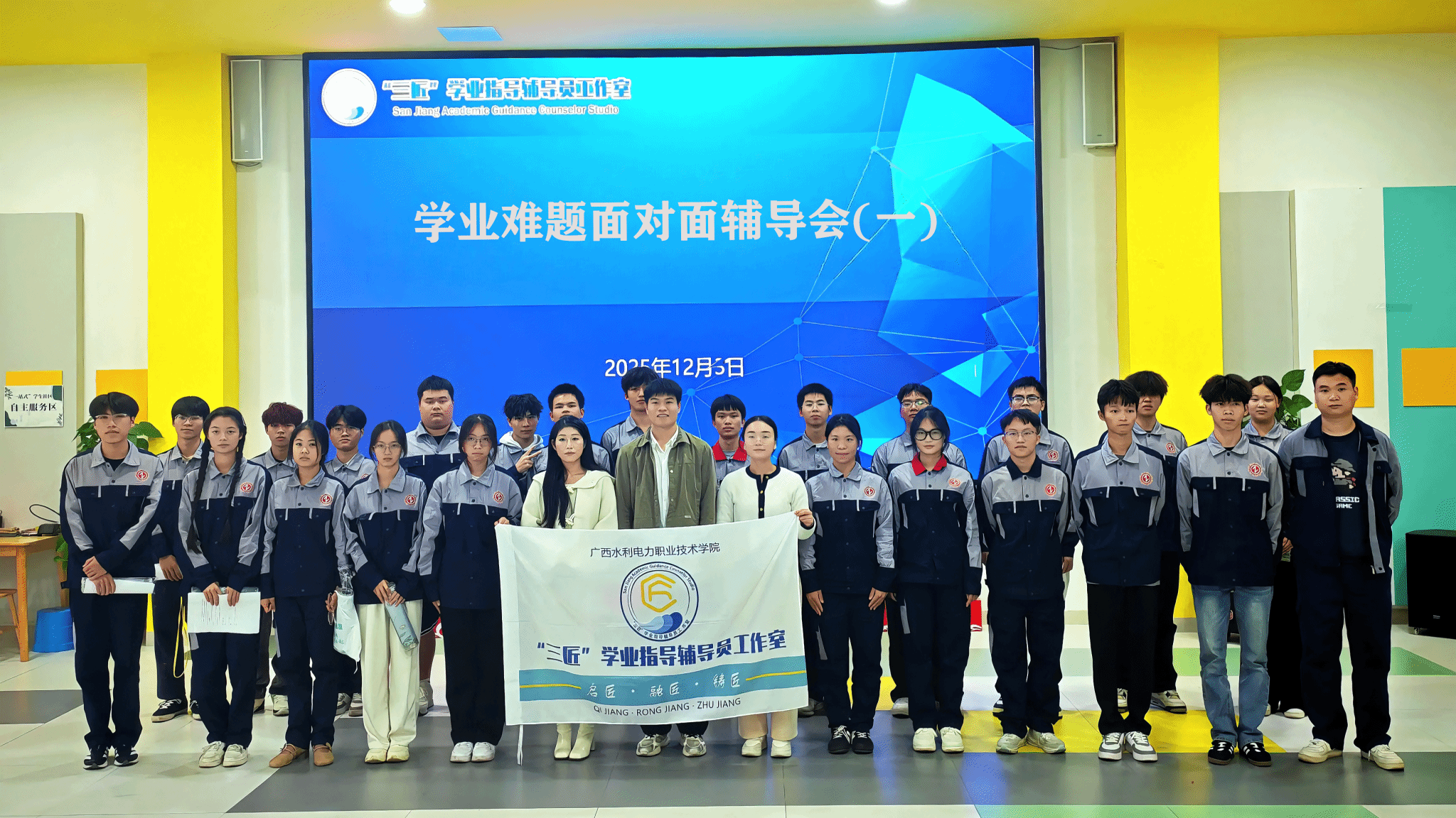 [本网讯]2025年12月3日,“三匠”辅导员工作室在里建“一站式”学生社区大厅举办学业难题面对面辅导会。活动以“经验分享+师徒结对”为核心,吸引了近30名大一新生及大二、大三优秀学生代表参与,旨在为新生解答学业困惑、明晰发展方向。