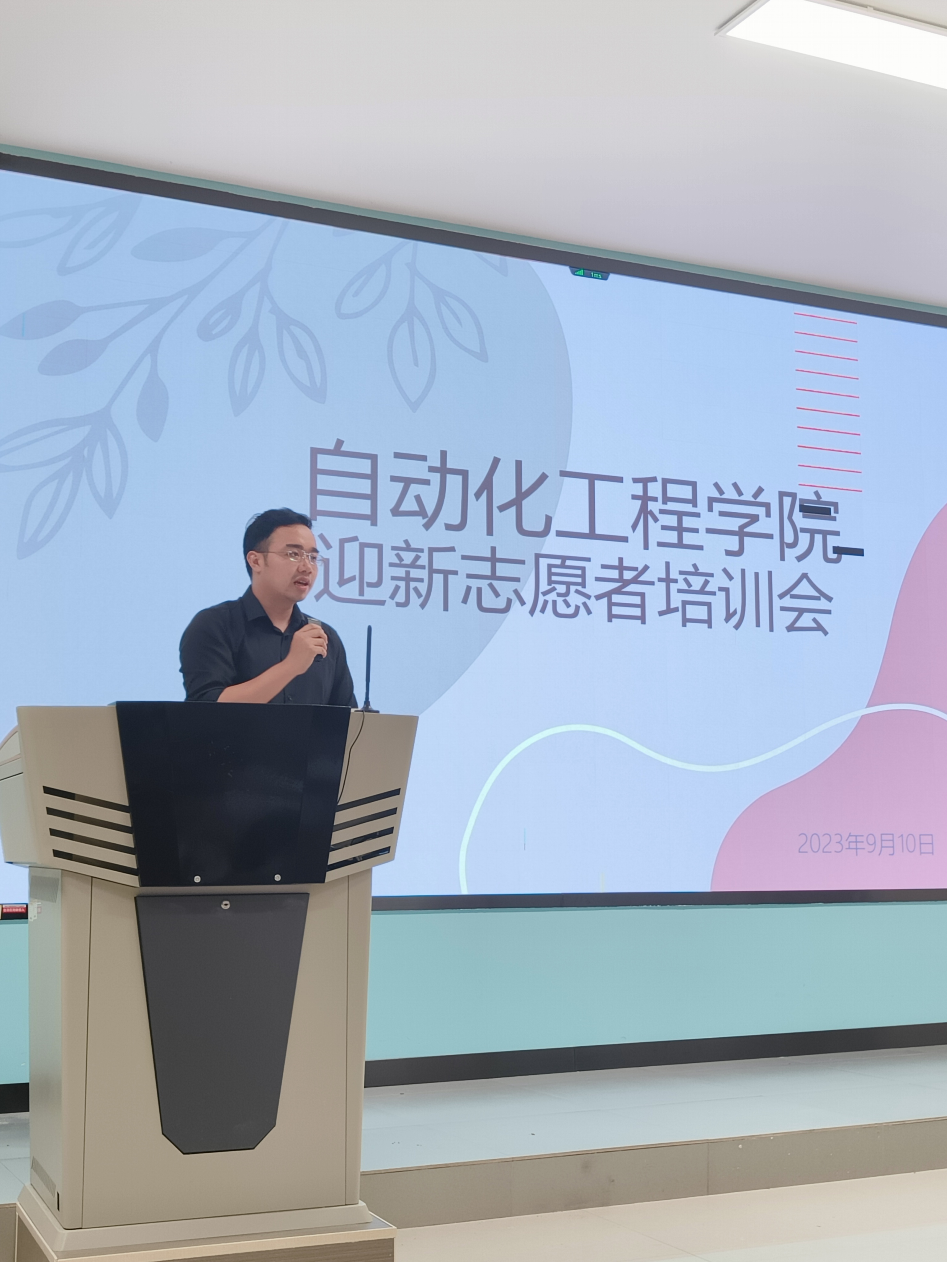 [本网讯]为进一步提升迎新工作志愿者的服务能力,9月10日晚,自动化工程学院在里建校区教学楼阶梯201教室召开了迎新工作志愿者培训会。会议由学院团委负责老师林睛岚主持,团委秘书部成员和全体迎新工作志愿者参加了培训。