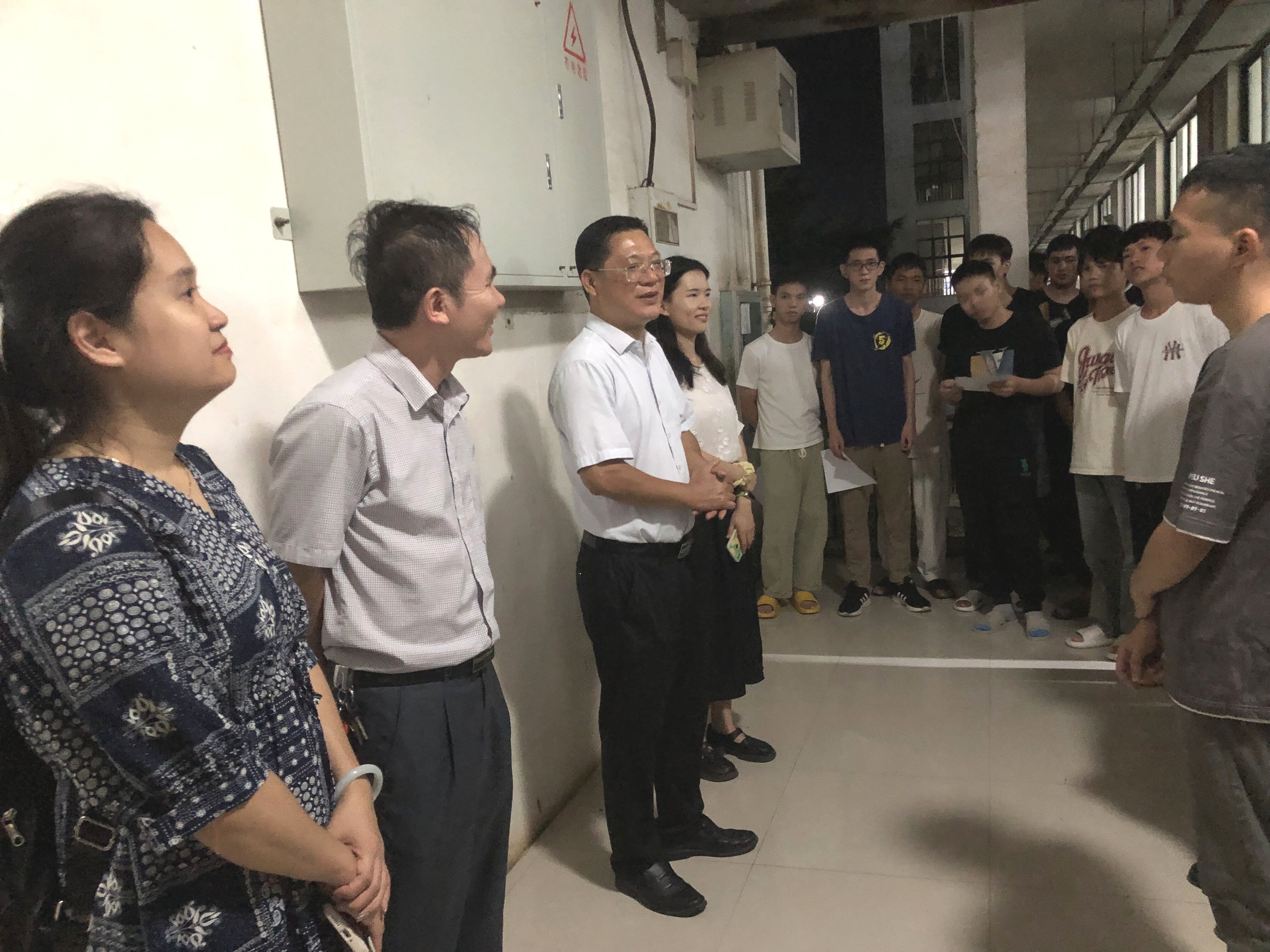 [本网讯]为切实做好学生管理工作,及时了解新生的思想动态及生活、住宿情况,9月12日晚,自动化工程学院院长陈光会、党总支书记石庆华、副院长姚开武、包毅及2023级辅导员、班主任一行走访了新生宿舍,为新生送上了真诚关怀和殷切期待。