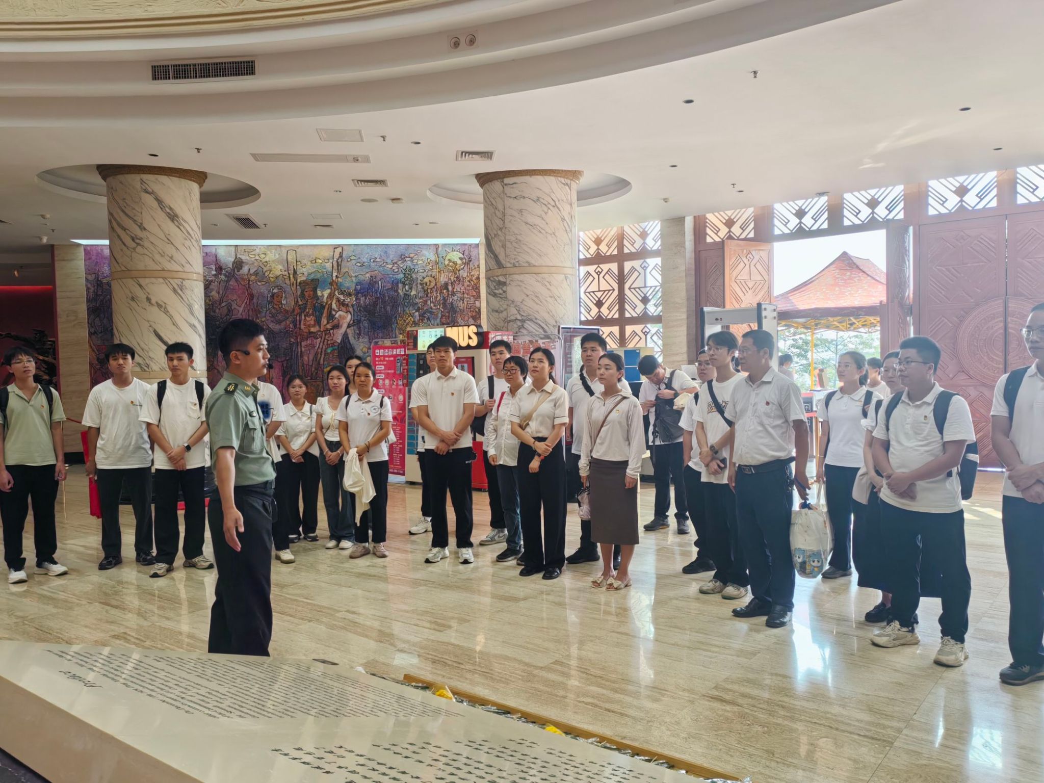 大家首先来到百色起义纪念馆,在讲解员的带领下一同参观了馆内陈列的文物与照片,从中追寻邓小平、张云逸、李明瑞、韦拔群等老一辈革命家光辉的足迹,深刻感受百色起义的波澜壮阔,革命先烈们为了民族解放、人民幸福而英勇奋斗的伟大精神。