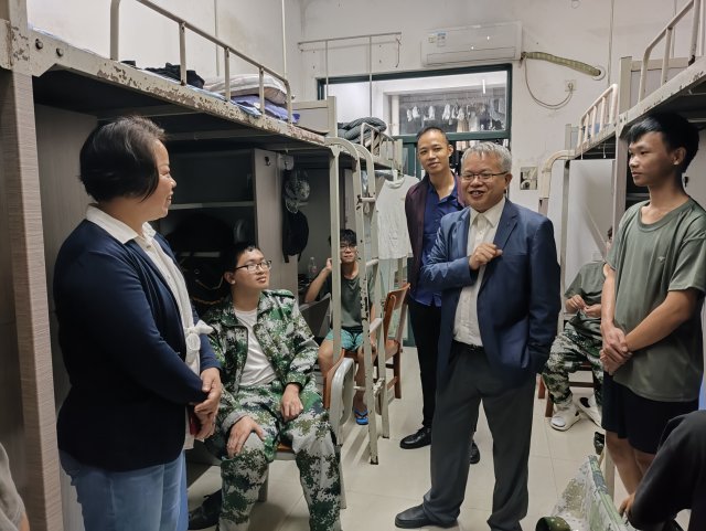 走访过程中,蒋副校长一行与同学们聊生活、问冷暖、谈学习、做规划。蒋副校长询问2023级新生近期军训情况,听取学生们未来三年的学业规划,并耐心给他们提出规划建议;韦素娟副处长和罗宇强书记叮嘱同学们要注意人身财产安全,调整好状态,合理作息,以饱满的热情投入到学习生活中去。