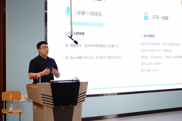 在“企业大讲堂”中,李鑫经理以自己的成长经历为例,为同学们做了职业生涯规划指导,他鼓励同学们要确立职业目标,认真学习职场礼仪与处事方法,在工作岗位上脚踏实地、刻苦学习,以新姿态面对未来职场挑战。
