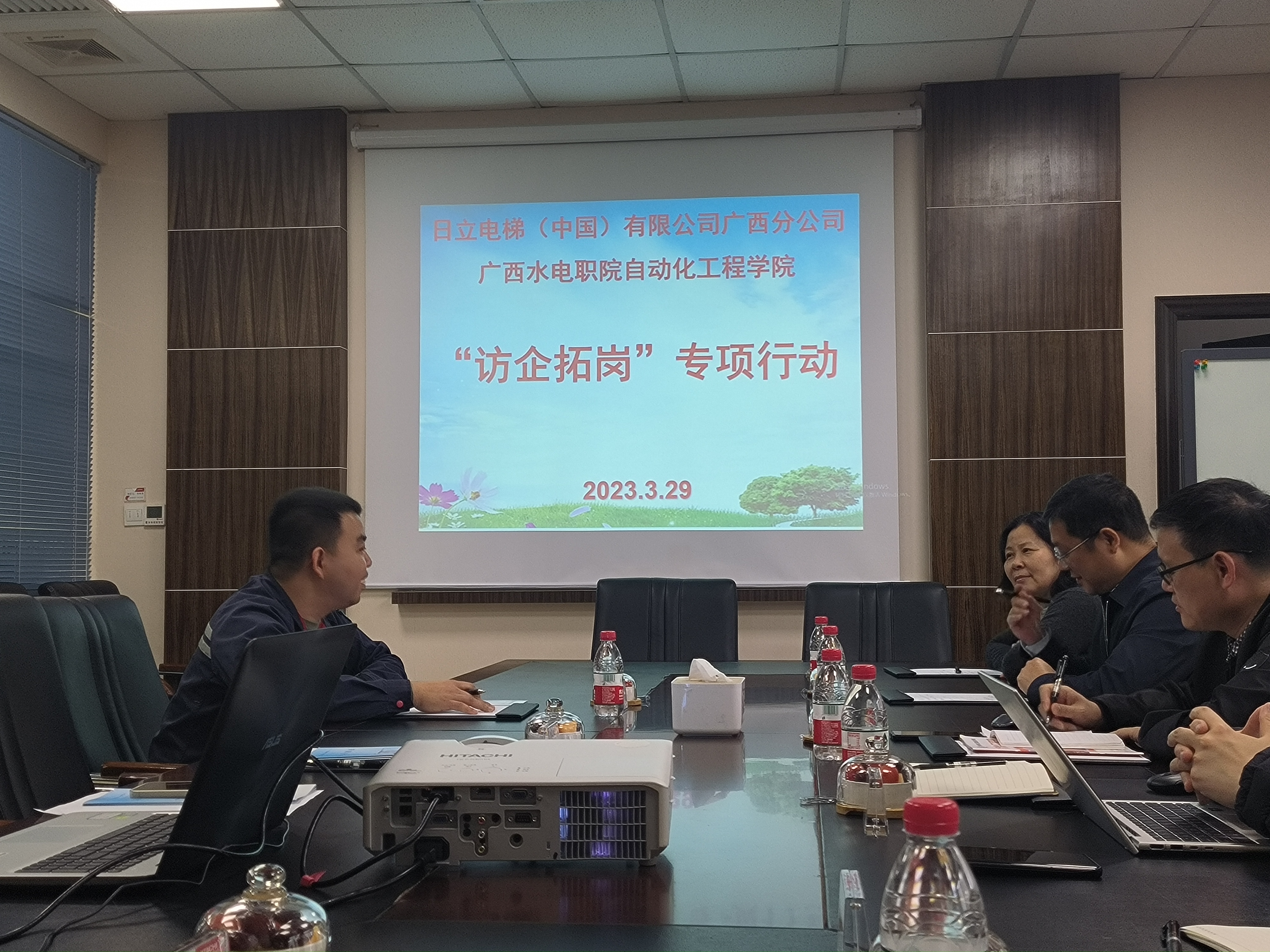 [本网讯]3月29日上午,自动化工程学院院长陈光会、党总支书记石庆华、副院长包毅和相关教学团队负责人前往日立电梯(中国)有限公司广西分公司开展“访企拓岗”专项行动并看望在该公司实习、工作的学生。