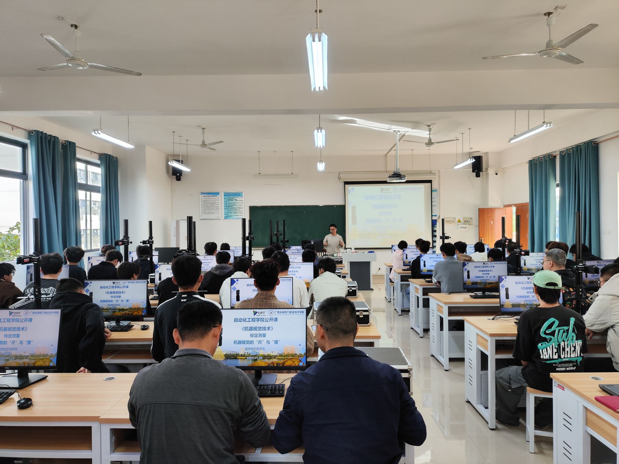 [本网讯]为提升教师教学能力与课堂质量,2025年11月26日上午,自动化工程学院组织开展了《机器视觉技术》院级公开课。本次公开课由杨振华老师主讲,学院副院长郭平、教学督导姚开武以及电气专业团队负责人甘文等10多名专业教师参与现场观摩。